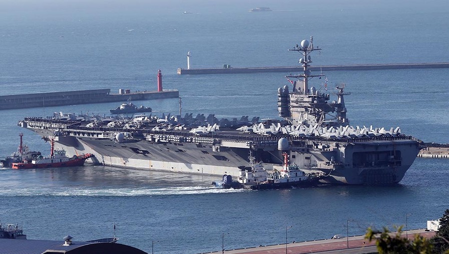 十一月的三亚,海阔天高,碧波浩瀚。军港内,福建舰踏海而立、满旗高悬,山东舰伏波相伴,来自海军部队和航母建设单位的代表2000余人在码头整齐列队,气氛隆重热烈。