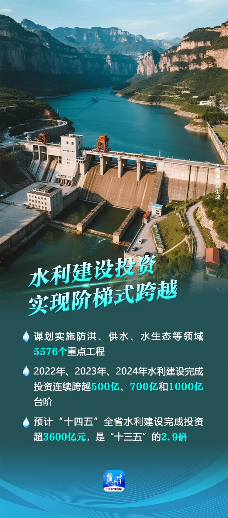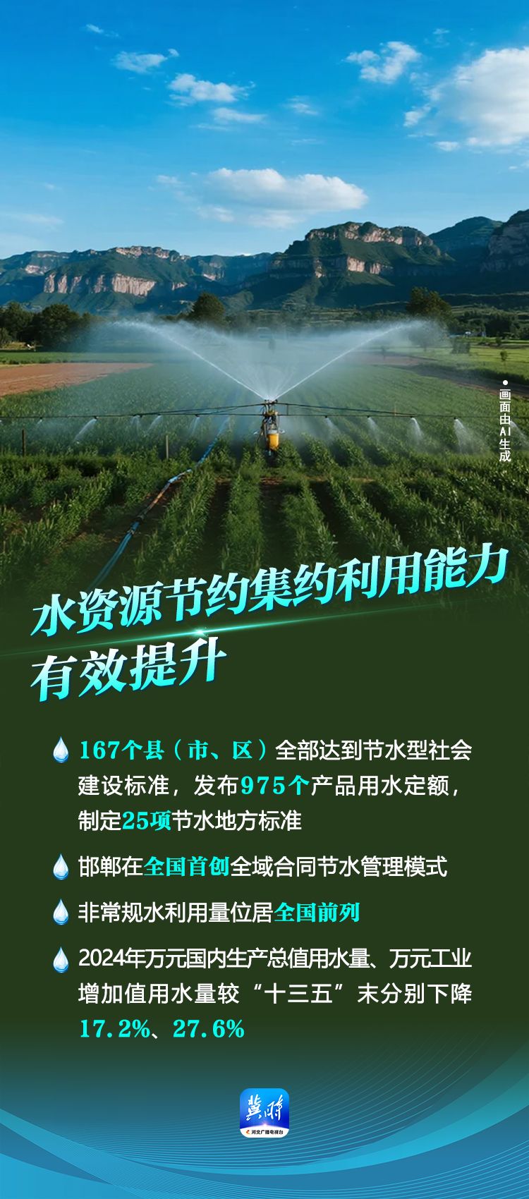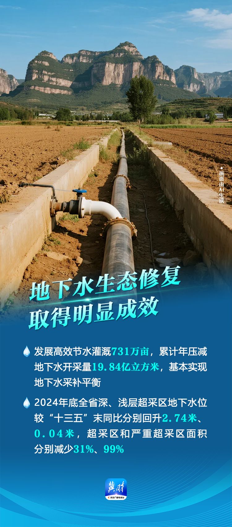 来源:河北广播电视台冀时客户端原标题:AI 海报·数说“十四五”河北答卷丨防治修复并举 河北水利改革发展显成效