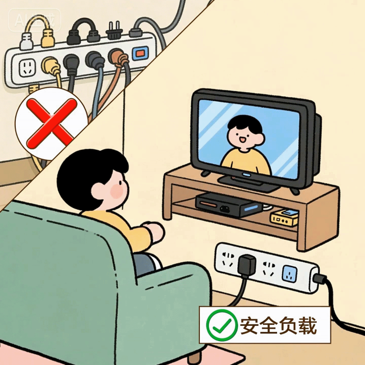 插座不是万能孔,拒绝过载防短路。不私拉乱接电线,不同时在一个插线板上使用多个大功率电器。使用合格电器产品,老旧线路及时换。
