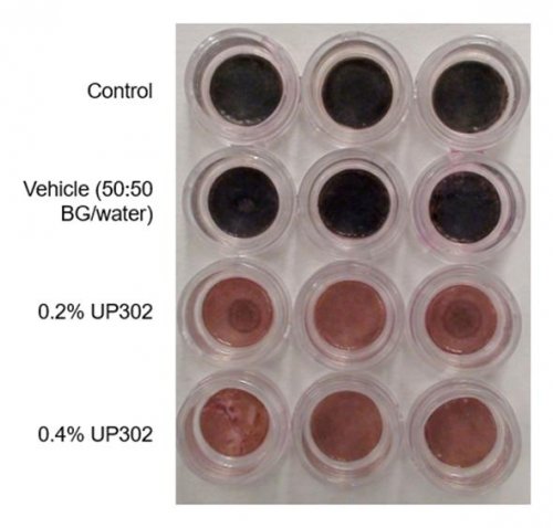 为攻克天然分子在应用中的稳定性与透皮效率等难题,联合团队对其结构进行了深度解析与精准修饰,显著提升了配方稳定性与透皮吸收效率。研究人员通过先进的化学合成与生物工程技术,在实验室条件下实现了高倍提纯,获得了高活性、高纯度、高稳定性的UP302,确保其在低浓度下即可实现卓越的作用效果。