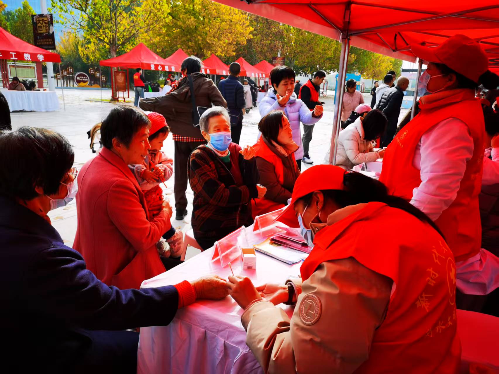 “科普宣教区”聚焦民生,反电诈宣传守护“钱袋子”,安全出行科普筑牢“平安线”,文明养犬、文化遗产保护、反对浪费崇尚节约、健康、消防、急救等知识科普贴近日常生活需求,为市民打造了一个实用的民生“充电站”;“公益服务区”爱心涌动,健康义诊、爱心义剪、公益课堂(手织围巾、剪纸教学)、便民服务(磨菜刀、首饰清洁、皮鞋护理等)、公益红娘等暖心服务让文明成果可感可及;“非遗文创区”匠心独运,衡水地毯传统编织、内画、拓版等传统技艺与现代创意碰撞出灿烂的文化火花,让市民在亲手体验中触摸历史、感知文化温度;“互动答题区”一片欢声笑语,家长与孩子在“文明大转盘”、“集章”打卡、趣味游戏中寓教于乐;“我爱家乡合影打卡区”则定格了一张张幸福笑脸,表达对家乡最深切的热爱与最美好的祝福。多种功能区域充分满足了不同年龄段市民的需求,汇聚了旺盛的人气,营造出“文明创建人人参与,文明成果人人共享”的浓厚氛围。