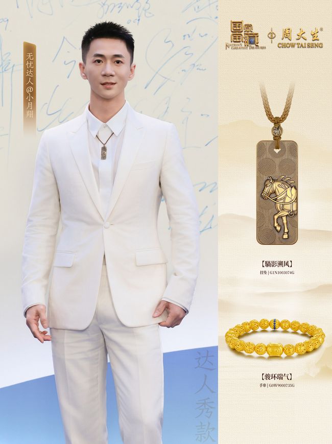 马作为华夏文明中象征昂扬奋进的祥瑞之兽,承载着深厚的文化寓意。周大生×国家宝藏的吉庆金·瑞马系列,以唐太宗开国战马为设计灵感,融合宝藏鎏金、纂刻、拉丝等多种精湛工艺,将千年骏马奔腾不息的神韵凝练于黄金之中,赋予传统图腾以现代美学的全新表达。全能舞者“小月翔”,无忧达人“宇宙S.K.Y-三金dd”佩戴吉庆金·瑞马系列“騧影溯影”“骏环瑞气”“金镫吉运”等产品,以唐风古韵融汇当代时尚,踏光而来。吉庆金·瑞马系列不仅承载着“马到成功”的美好祝愿,更化作彰显个性与态度的酷飒符号,在文化传承与时代风貌的交融中,展现出独特的自我风格与精神力量。