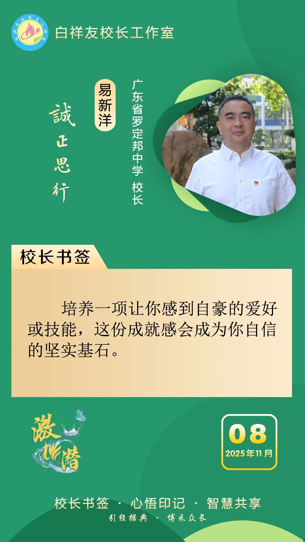 “白祥友校长工作室”成立于2019年4月,是教育部“国培计划”中小学名校长领航工程、河北省首批名校长工作室,目前省内外成员校59所。工作室坚持“资源共享、智慧共融、互助共赢”理念,已成为思想碰撞的交流场,资源共享的品牌站,成果展示的辐射源。 点赞 +1 微博 微信 我要评论 发布 相关推荐 衡水十三中举办第21期学科交流暨“教师大讲堂”活动 教育大观 2天前 衡水十三中与衡水市特殊教育学校结为友好学校 教育大观 2天前 衡水十三中多名教师省市级精品课获奖 教育大观 6天前 非遗技艺+现代科技,衡水十三中学子趣味技能双丰收 教育大观 01-26 衡水市名校长大讲堂在衡水十三中举办 教育部中小学校长培训办公室于维涛主任作专场报告 教育大观 01-19 衡水十三中与天津市实验中学滨海学校结为友好学校 教育大观 01-09 中央生态环境保护督察组交办衡水市第三十三批群众信访举报案件办理情况 衡水速览 2025-12-30 热门 一天 三天 一周 1 【回眸2025】潮涌湖城满目新——衡水2025年全面深化改革工作综述 2 今年高职单招考试2月3日开始网上报名 3 年味浓 吉祥至 衡水春节饰品走俏市场 4 衡水市文化艺术中心40余项精彩文旅活动喜迎新春 5 女子掉入冰窟 衡水消防紧急救援 6 阜城县古城镇:VR消防进校园 安全知识“沉浸”学 7 温情服务 暖心归途 ——衡水铁路春运首日见闻 8 衡水市举办社区专题招聘会助力返乡群体就业 9 独家视频丨习近平同乌拉圭总统会谈:你是中国人民的好朋友 也是今年首位访华的拉美国家元首 10 新思想引领新征程丨守护大美湿地 建设美丽中国 1 衡水武强:“小小蓝莓”结硕果 特色农业助农富 2 衡水湖举办世界湿地日宣传活动 传递生态守护理念 3 特稿|同心七十载 聚力新未来——中非携手共逐发展振兴梦 4 春运启幕 衡水车务段全力守护旅客平安顺畅出行 5 【回眸2025】潮涌湖城满目新——衡水2025年全面深化改革工作综述 6 衡水武强:赶订单忙生产 金音乐器奏响新春“奋进曲” 7 值班总编说报|燕赵春潮起 湖城奋楫行 8 【“十五五”开好局起好步】以文塑旅 以旅彰文 推动文化和旅游融合发展 9 振翅向自由! “衡湖福雁”重归衡水湖 10 衡水桃城区:让低空经济“飞”出新高度 1 向“新”发力 提“质”前行——衡水市桃城区以科技创新赋能经济高质量发展 2 一场开到村民心坎上的新春“服务大集”——阜城县古城镇刘南星阁村举办惠民活动见闻 3 日产日清 不留存积 衡水市城管局多举措优化冬季垃圾清运方案 4 桃城区举办“乡村文化大集”把文化年礼送到群众家门口 5 拳承一脉 “捶韵”相传——探寻三皇炮捶的世代坚守与传承 6 衡水十三中多名教师省市级精品课获奖 7 约上“搭子” 挥汗“来一场” 衡水市主城区9家百姓健身房满足群众体育便捷化服务需求 8 衡水市景县举办青年联谊会 “低彩礼·零彩礼”引领婚恋新风尚 9 守牢底线、防患未“燃” 衡水市文化广电和旅游局开展消防安全警示教育培训 10 阜城县建桥乡开展安全宣传教育活动 广告 广告 广告 24小时 1 习言道|事关金融强国 习近平强调本质与本分 2 习近平总书记关切事|幸福花开新农家 3 白祥友名校长工作室 | 激潜教育探索随笔(第754期) 4 白祥友名校长工作室 | 激潜教育探索随笔(第753期) 5 海报系列||早安衡水 6 独家视频丨习近平同乌拉圭总统会谈:你是中国人民的好朋友 也是今年首位访华的拉美国家元首 7 新思想引领新征程丨守护大美湿地 建设美丽中国 8 阜城县古城镇:VR消防进校园 安全知识“沉浸”学 9 【经济新观察】从“低端超市”到“高端制造基地” 河北管道装备制造产业“突围” 10 今年高职单招考试2月3日开始网上报名