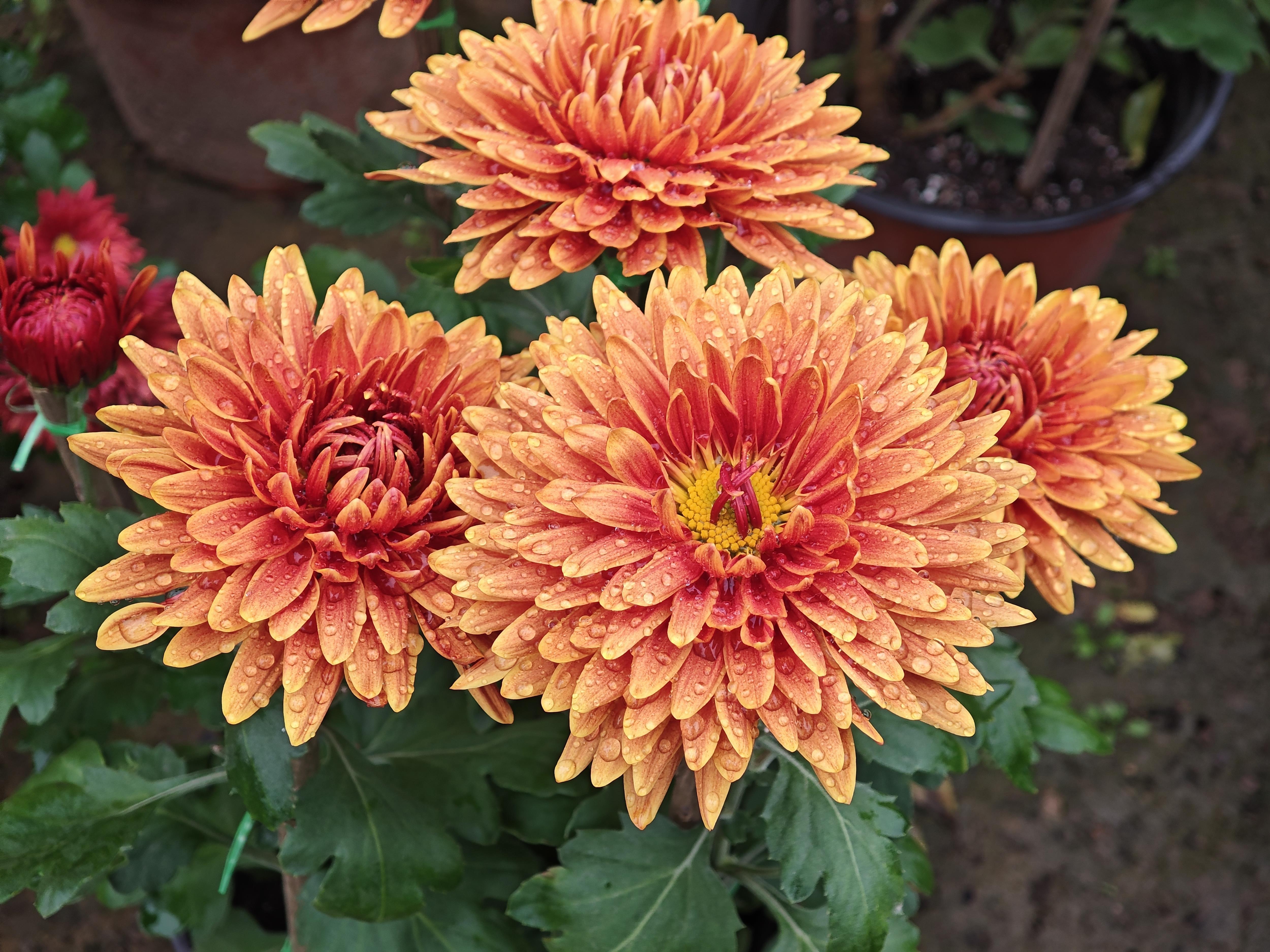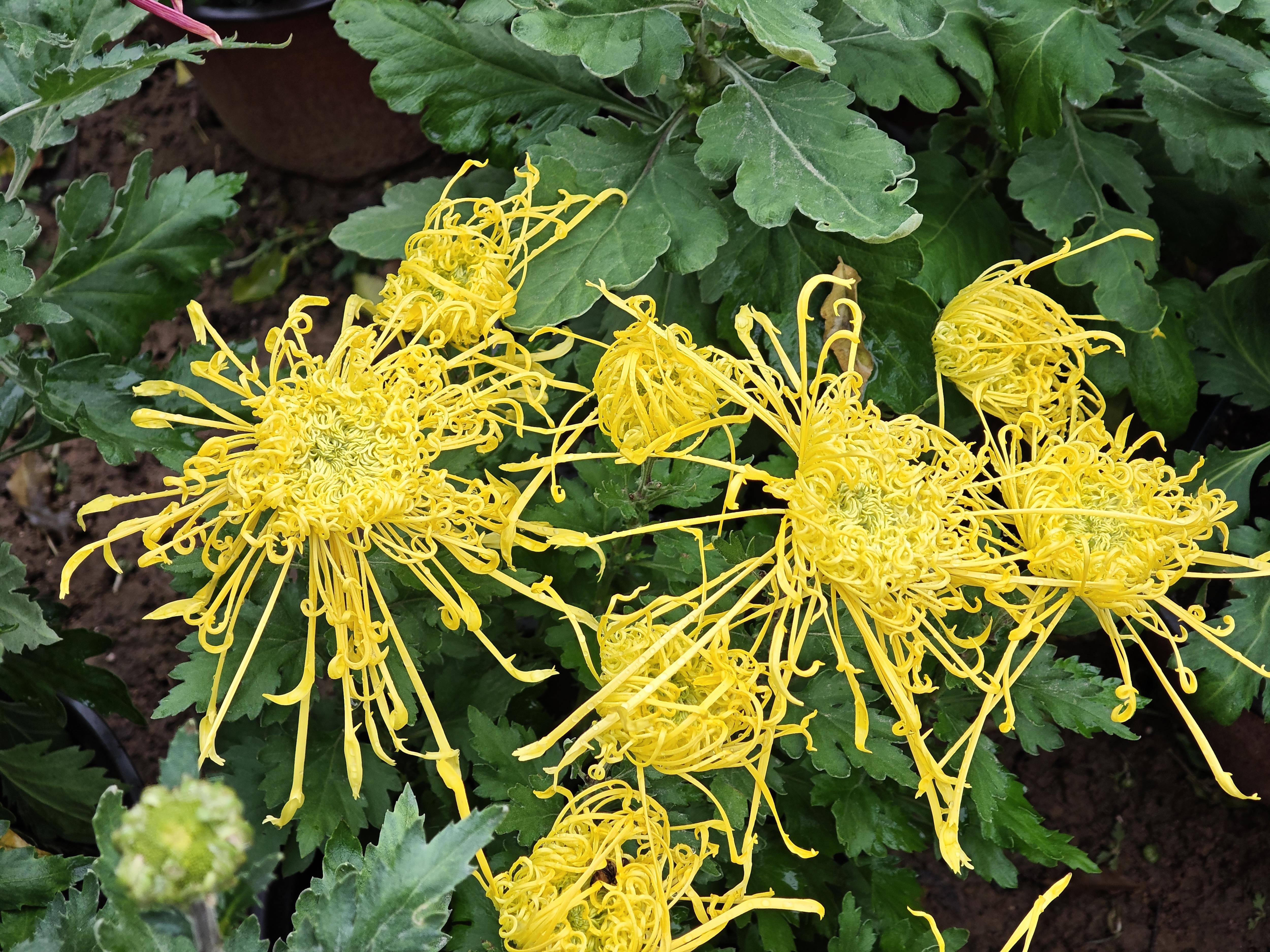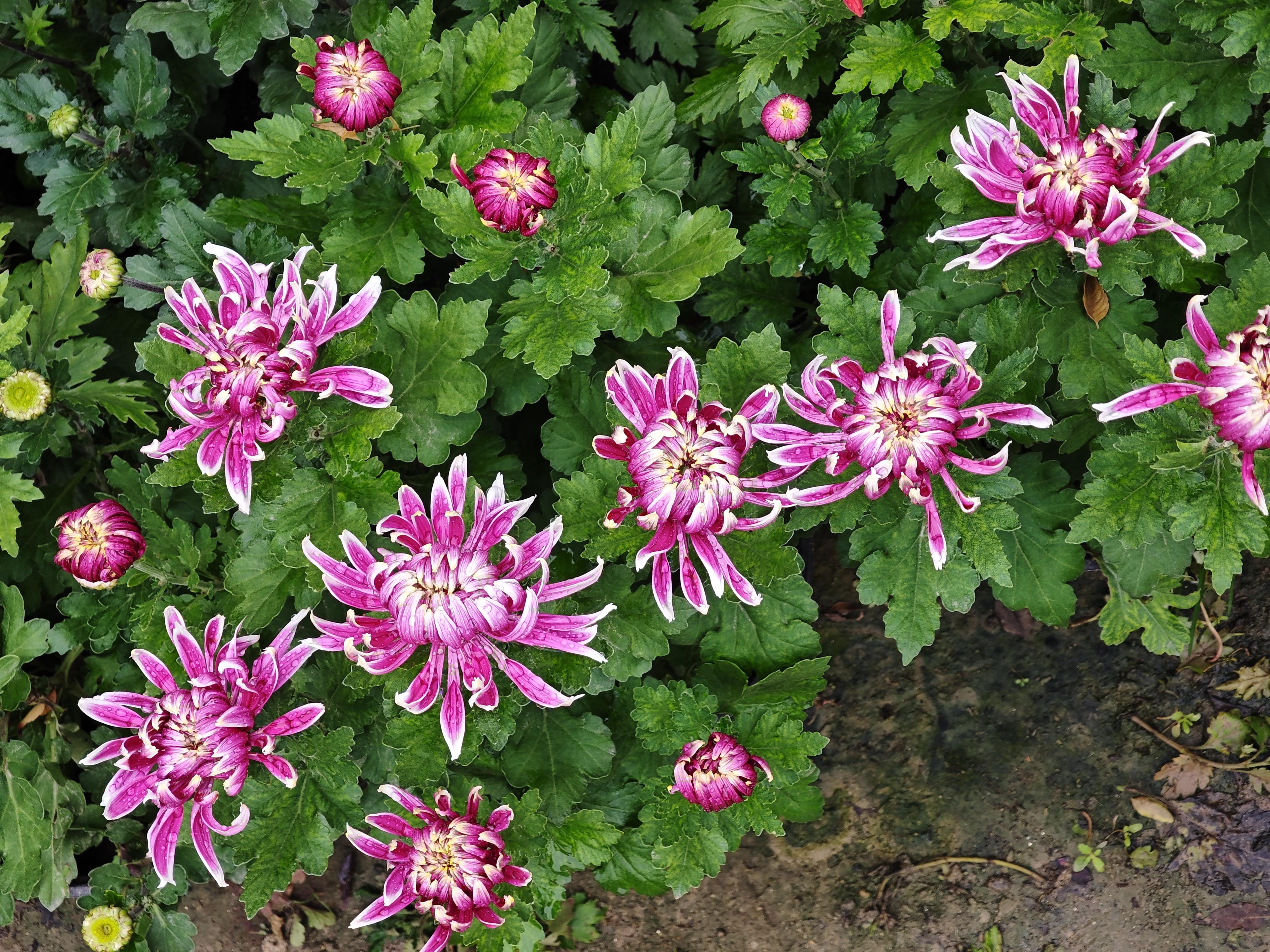 走进花田,仿佛步入七彩斑斓的菊花仙境。平瓣类莲座型的“金背大红”像是红宝石一般,正面花瓣的大红色与背面的金黄色相互衬托,像是精心制作的艺术品;“麦浪”以其独特、奔放的瓣形,牢牢地抓住了人们的视线,微风拂过,层层叠叠的“金丝”轻轻摇曳;“紫绣球”花如其名,形态浑圆,饱满如球,千百枚细长的匙形花瓣,紧密地簇拥在一起。