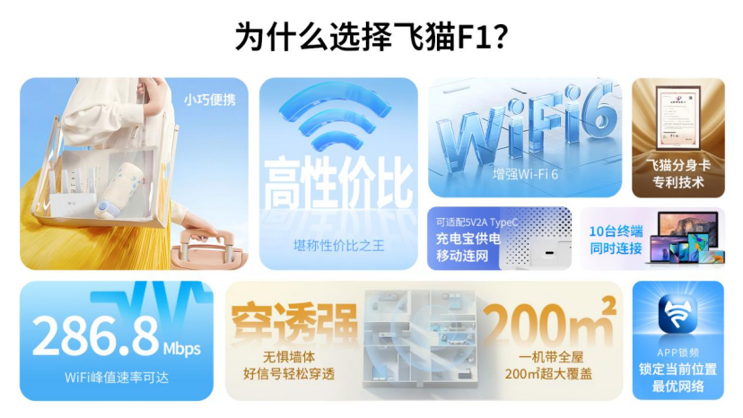 很多人初见飞猫 F1 会疑惑:“这么轻巧,能有像传统家里路由那样的信号吗?” 实际体验后会发现,你就会发现它完全继承了家庭路由器的核心优势。