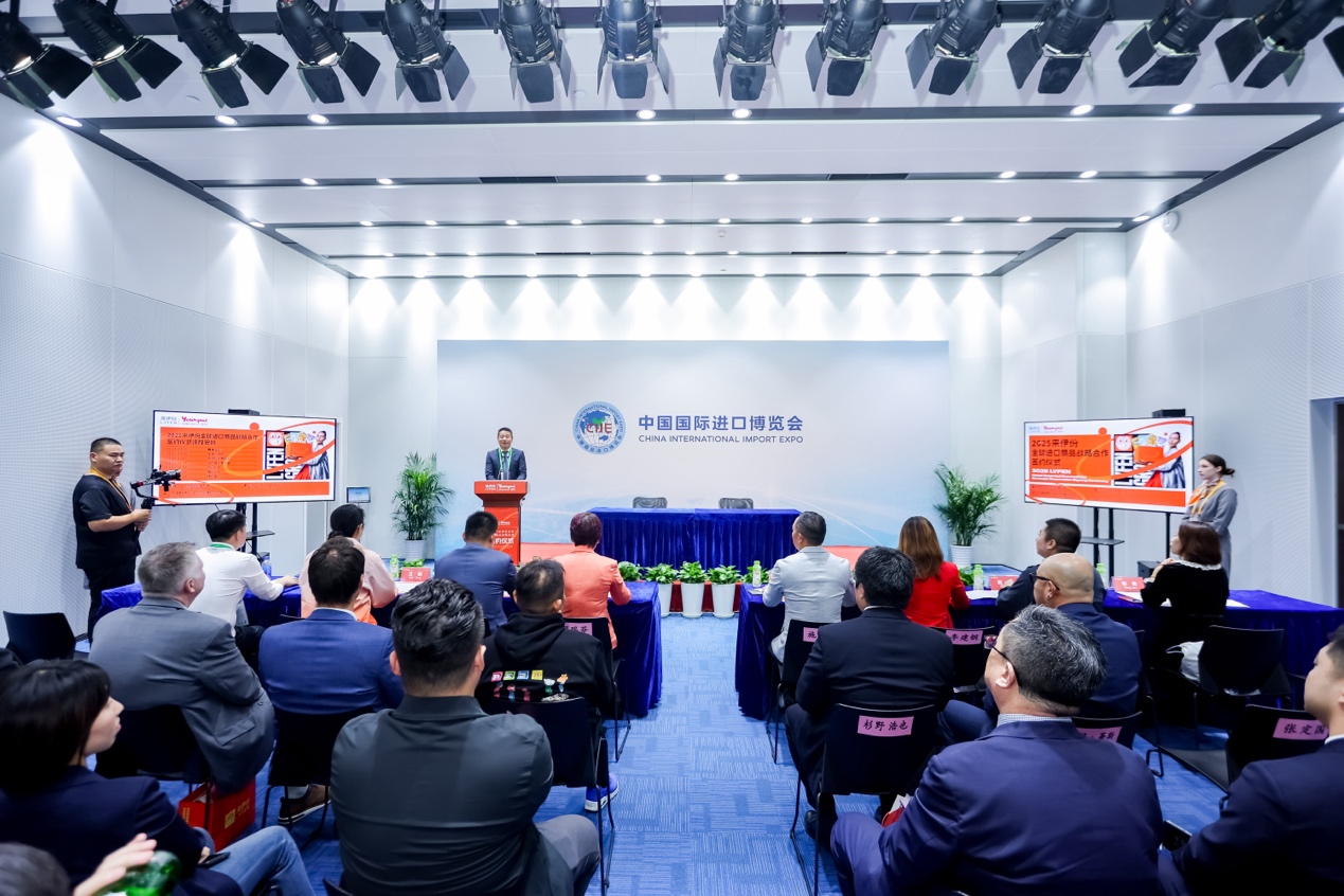 面对远道而来的“新朋旧友”,代表来伊份致辞的郁瑞芬总裁满怀感慨。她表示:“八年时光荏苒,来伊份始终与进博会‘新时代,共享未来’的主题保持同步。从首届的‘采购商’角色,到如今的‘全球品牌管理生态平台’,我们已经实现了从参与者到共建者的华丽转身。展望未来合作,我们将继续利用覆盖全球20多个国家的供应链网络,引进‘一带一路’共建国家的优质商品。同时,在本届进博会上展示的60款出海产品线的基础上,我们将不断推动更多承载中国文化的产品走向世界,真正实现‘中国品牌、世界制造、全球共享’的战略愿景。”