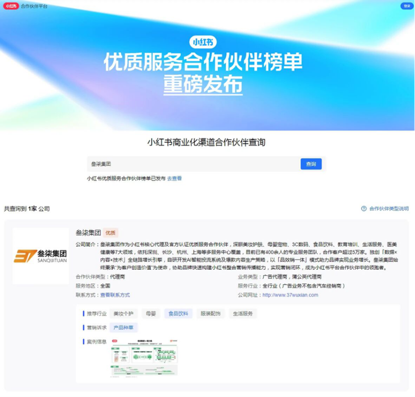 作为全域增长的先行者,小红书代理商叁柒集团早已将小红书营销置于品牌整体生意增长的战略高度。他们提出的“站内精细化种草,站外多渠道收割”方法论,已在多个知名品牌合作中得到成功验证。