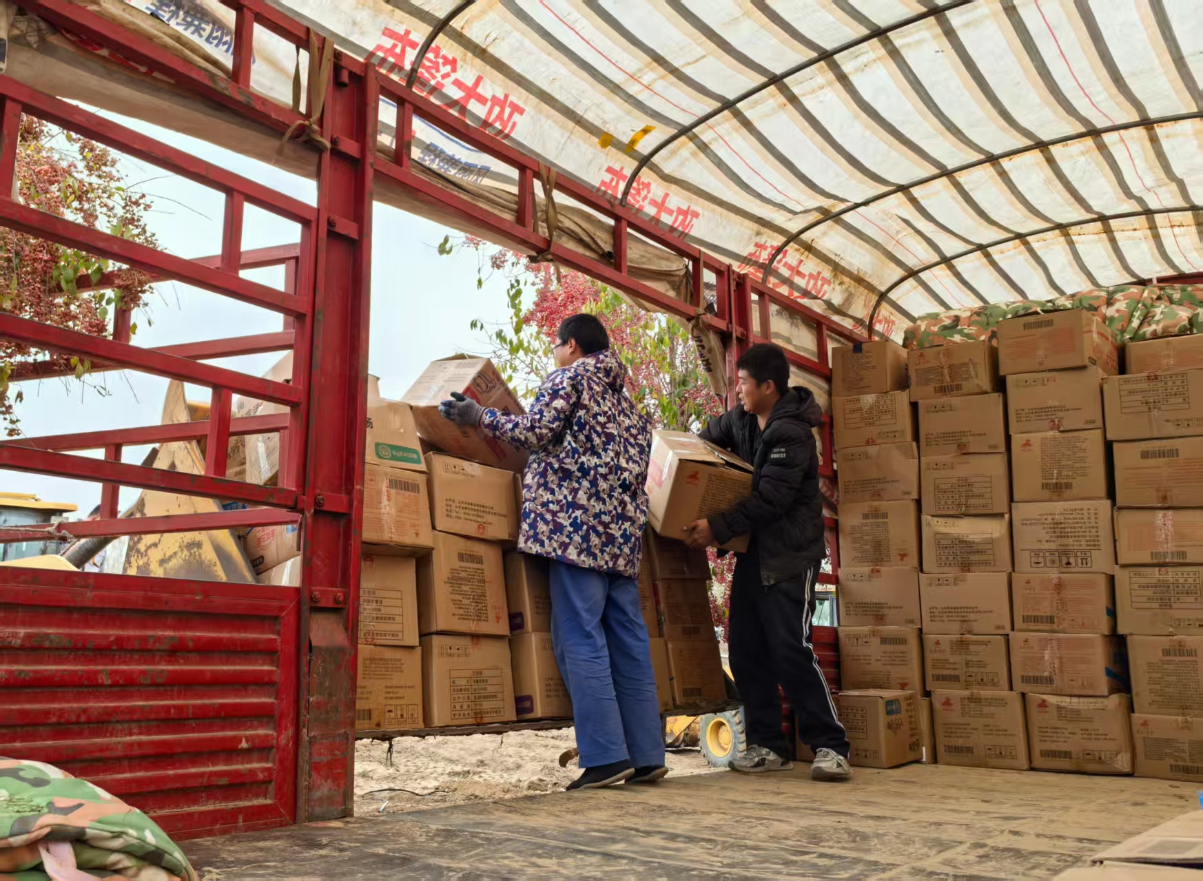 丰收的蜜薯不仅品质好,更成了市场上的“抢手货”。连日来,来自山东、辽宁、河南等地的客商络绎不绝,地头停满了前来拉货的车辆。“今天这些都是山东的客户,这几天,我们已经卖出去70多吨了,订单还在陆续发来。”赵伟指着地头上正在装车的大货车说道。除了外地客商,周围村镇的村民也纷纷骑着三轮车赶来采购。“我们给本地乡亲的价格更优惠一些,你看那边排队的三轮车,都是附近村民来买蜜薯的。”