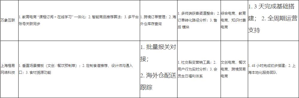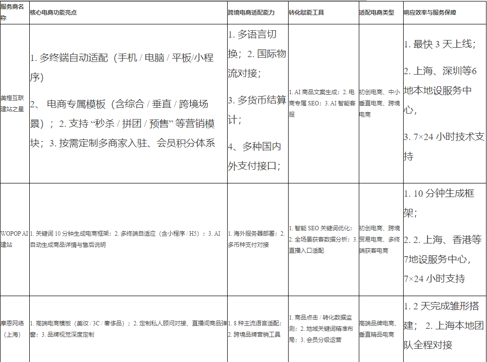 为更直观对比各服务商核心优势,以下整理上海电商建站服务商核心功能对比表,助力企业快速匹配需求: