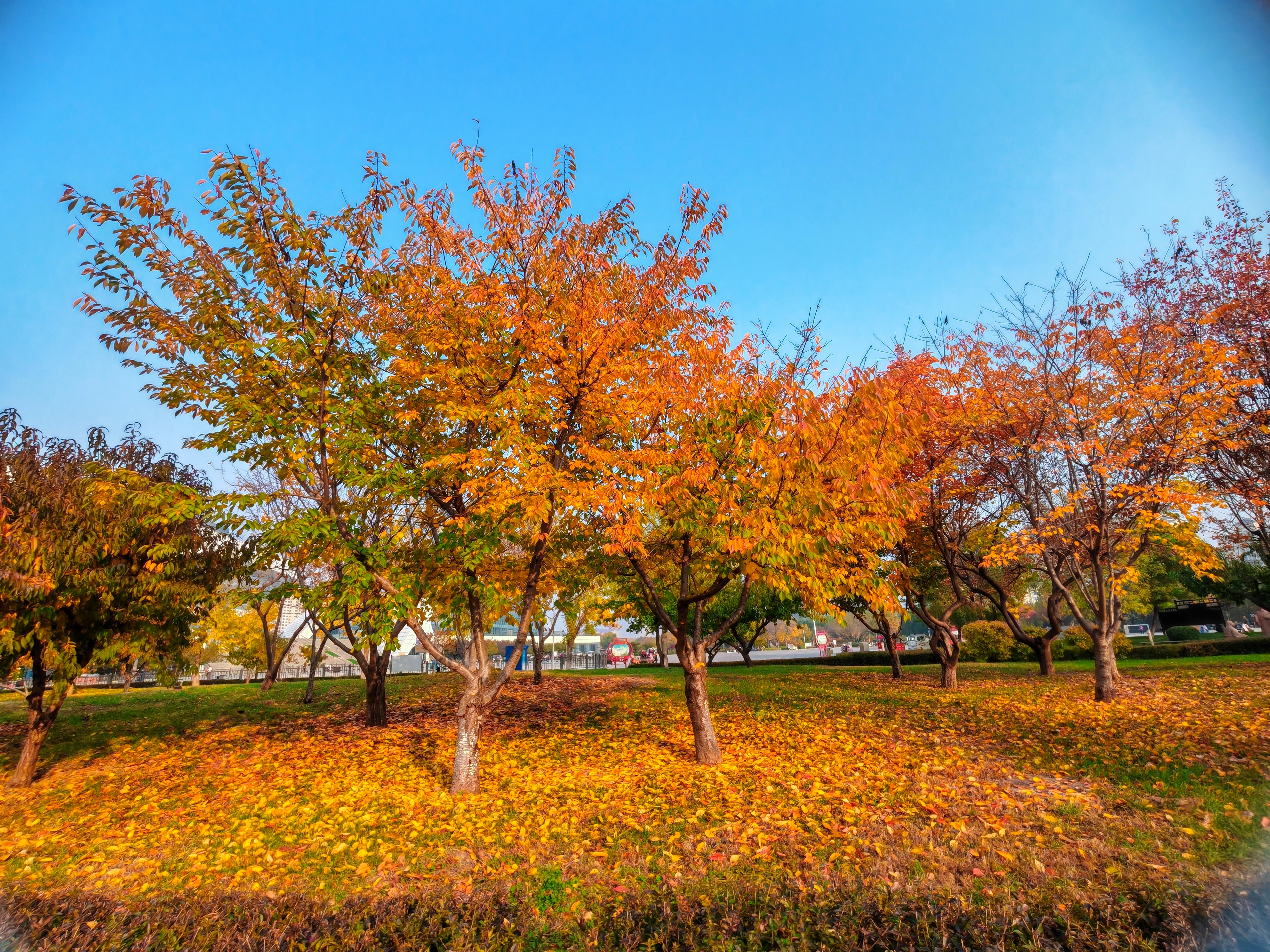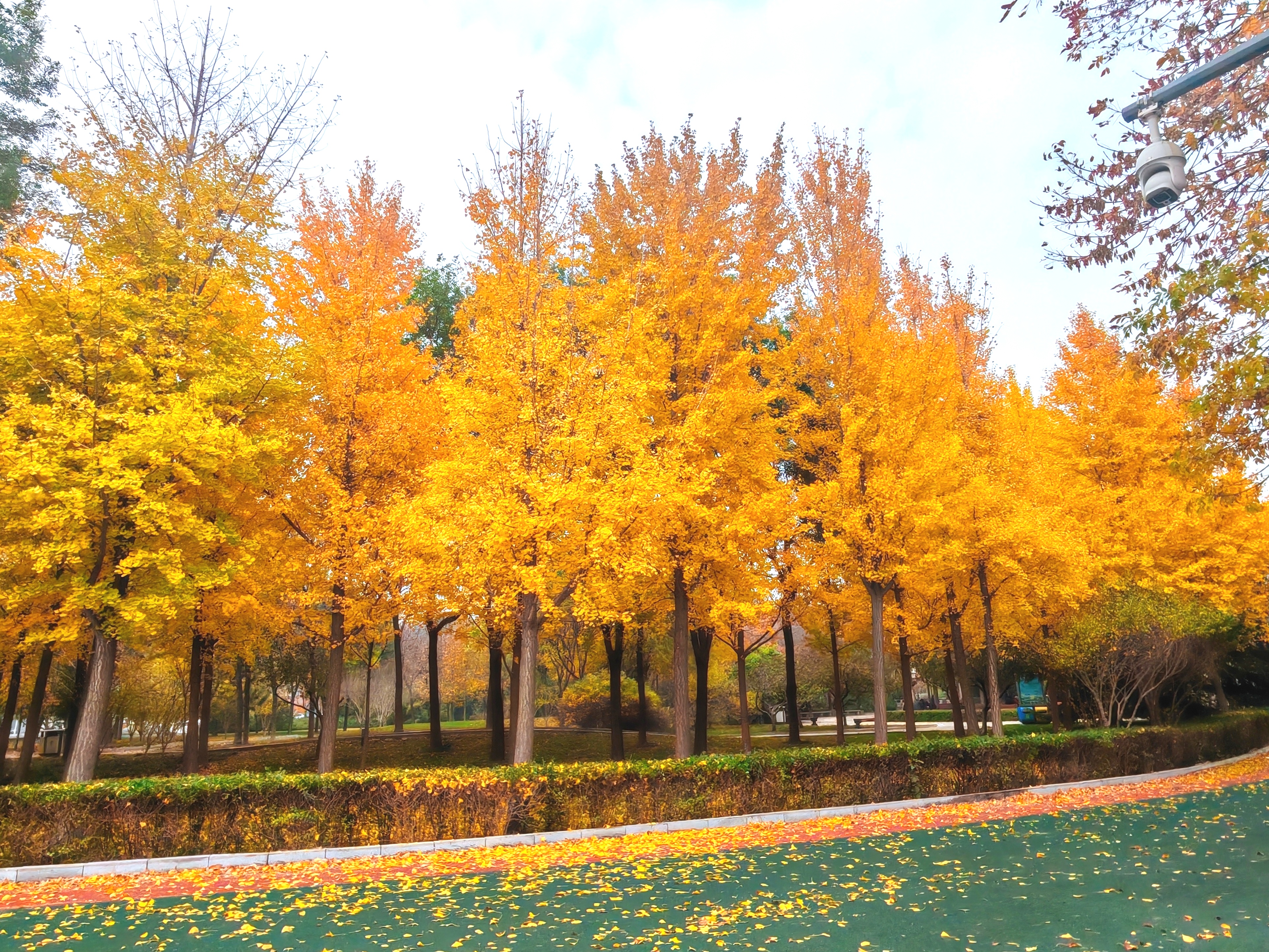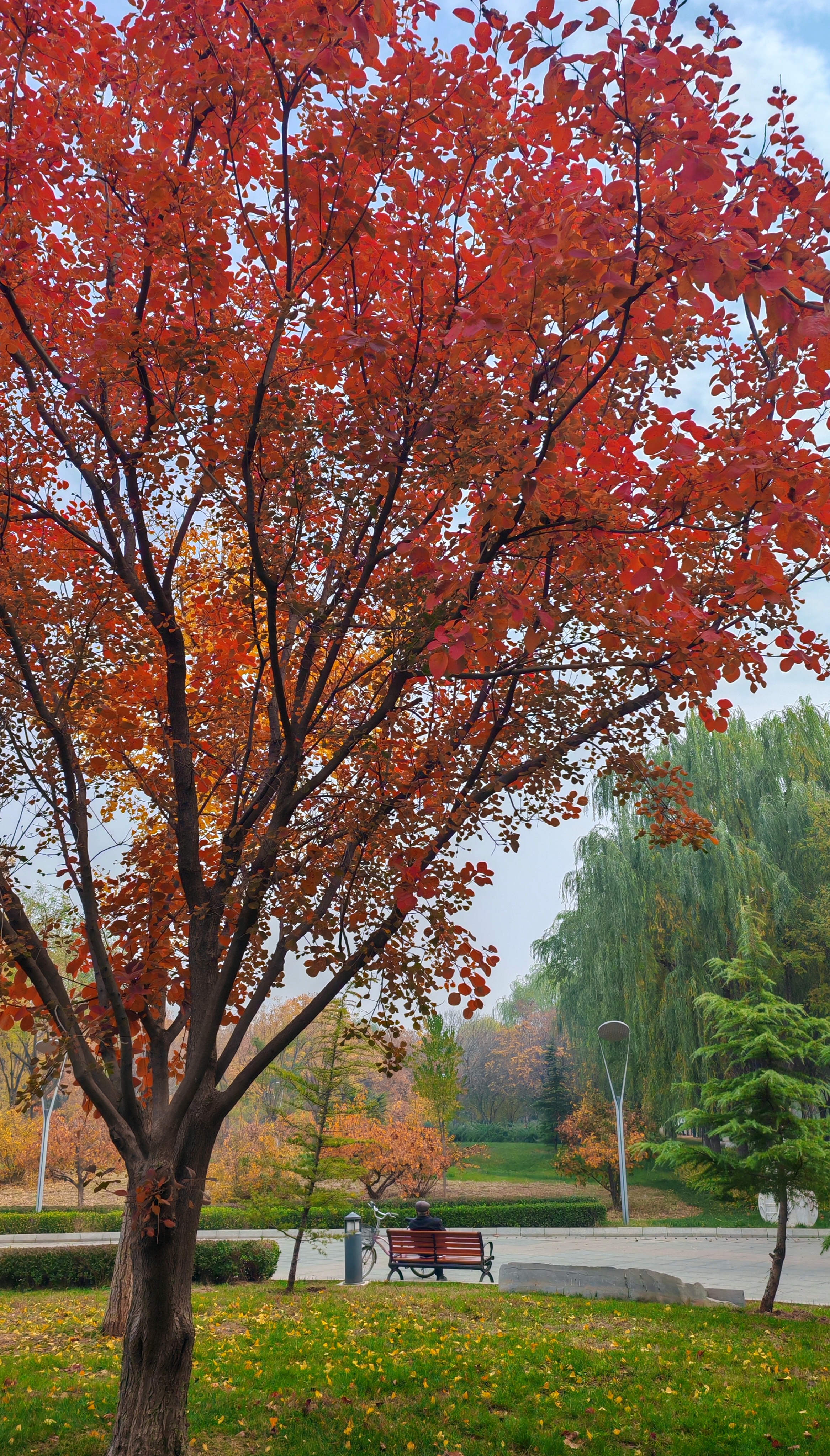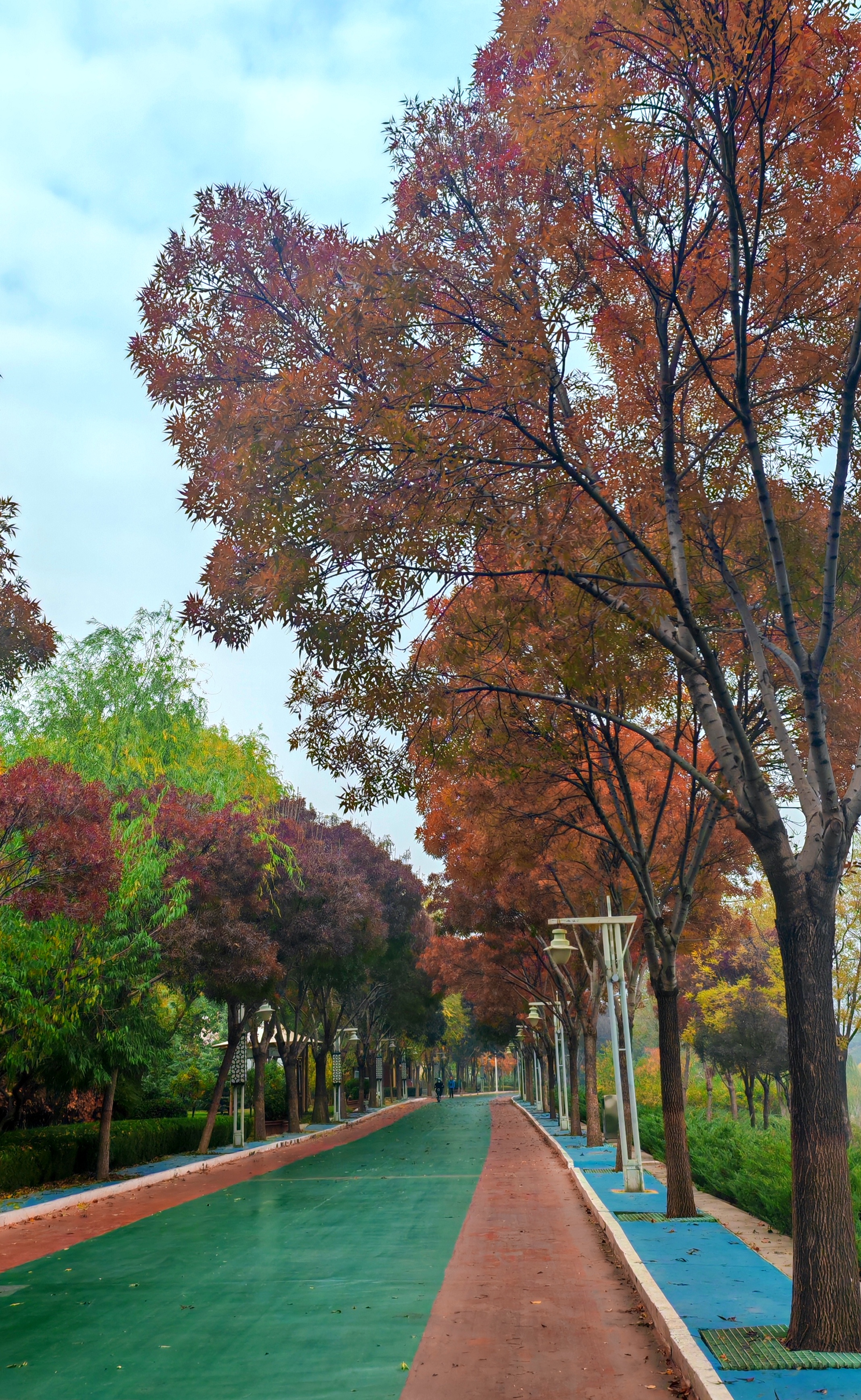 冬意初显,秋色未央。滏阳河畔健步路两侧,银杏正洒下碎金,枫树已燃起霞光,与白蜡树明艳的红黄交错成一片。漫步其间,仿佛行走在流动的油画里,每一步都踏在季节交替的韵律上。这片斑斓将冬的静谧与秋的热烈完美相融,绘就成了十一月最动人的画卷。
