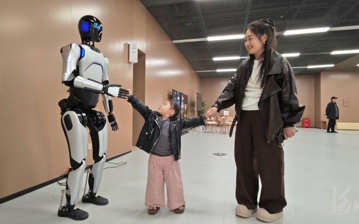 “能跟你握握手吗?”“少儿阅览区在哪里?”“能介绍一下雄安图书馆的特色吗?”在图书馆一楼,人形机器人馆员迈着步子自由行走,不时有读者上前求助、提问。王春城介绍,这款机器人依托专业大模型和多模态交互技术,可为读者提供图书推荐、信息咨询、场馆导览等服务。