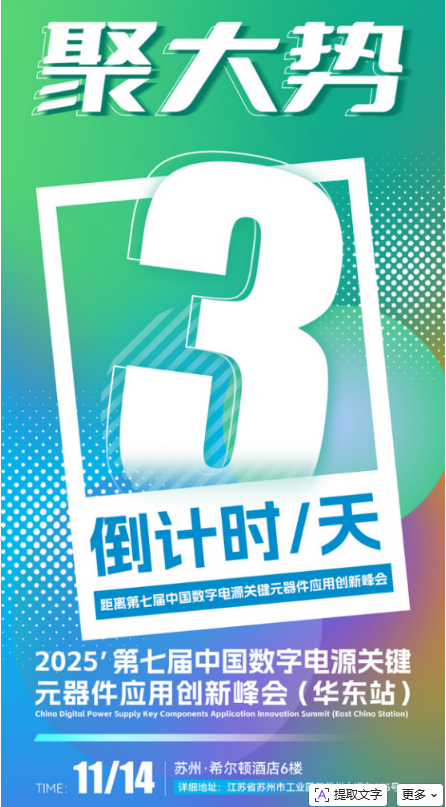 距峰会报名通道关闭仅剩三天!Big-Bit商务网诚挚呼吁广大电源工程师与产业链企业代表把握机遇,即刻行动。参与即享前沿技术前瞻与产业联动契机,共绘数字电源新蓝图。现场更设有深度互动交流与专属组团权益,敬候莅临!