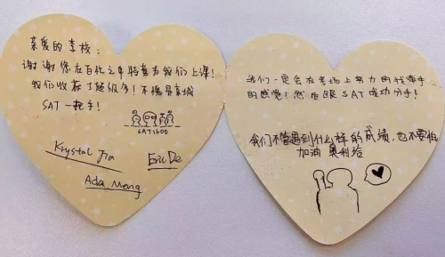 海淀凯文学生亲手写给李校长的答谢卡片