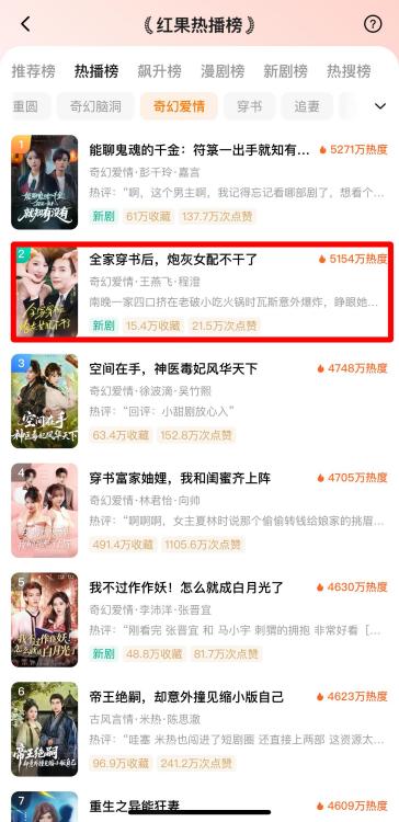 百川短剧推出全新短剧《全家穿书后,恶毒女配不干了》,在红果平台凭借扎实表现脱颖而出,热度值攀升至5154万,不仅稳坐“奇幻爱情”新剧榜榜首,更在热播榜位列第二,“穿书”“总裁”等细分赛道均跻身前列,成为短剧市场近期的亮眼新星。作为小鱼盈通(00139.HK)战略投资的核心内容平台,这部新作的突围,正是双方内容布局的有力印证。