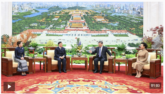习近平表示,2022年,我和我的夫人彭丽媛对泰国进行访问,同国王和王后亲切会面,就巩固中泰友好深入交换意见,引领中泰关系迈入构建命运共同体的新阶段。