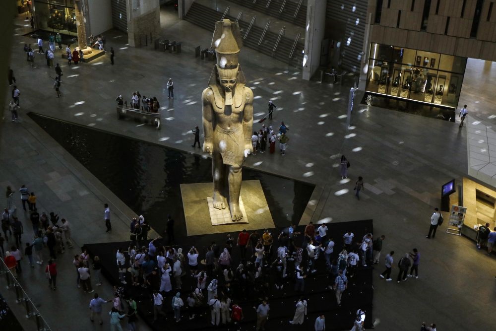 11月4日,大埃及博物馆正式向公众开放。这是古埃及法老拉美西斯二世巨像。新华社发(艾哈迈德·戈马摄)