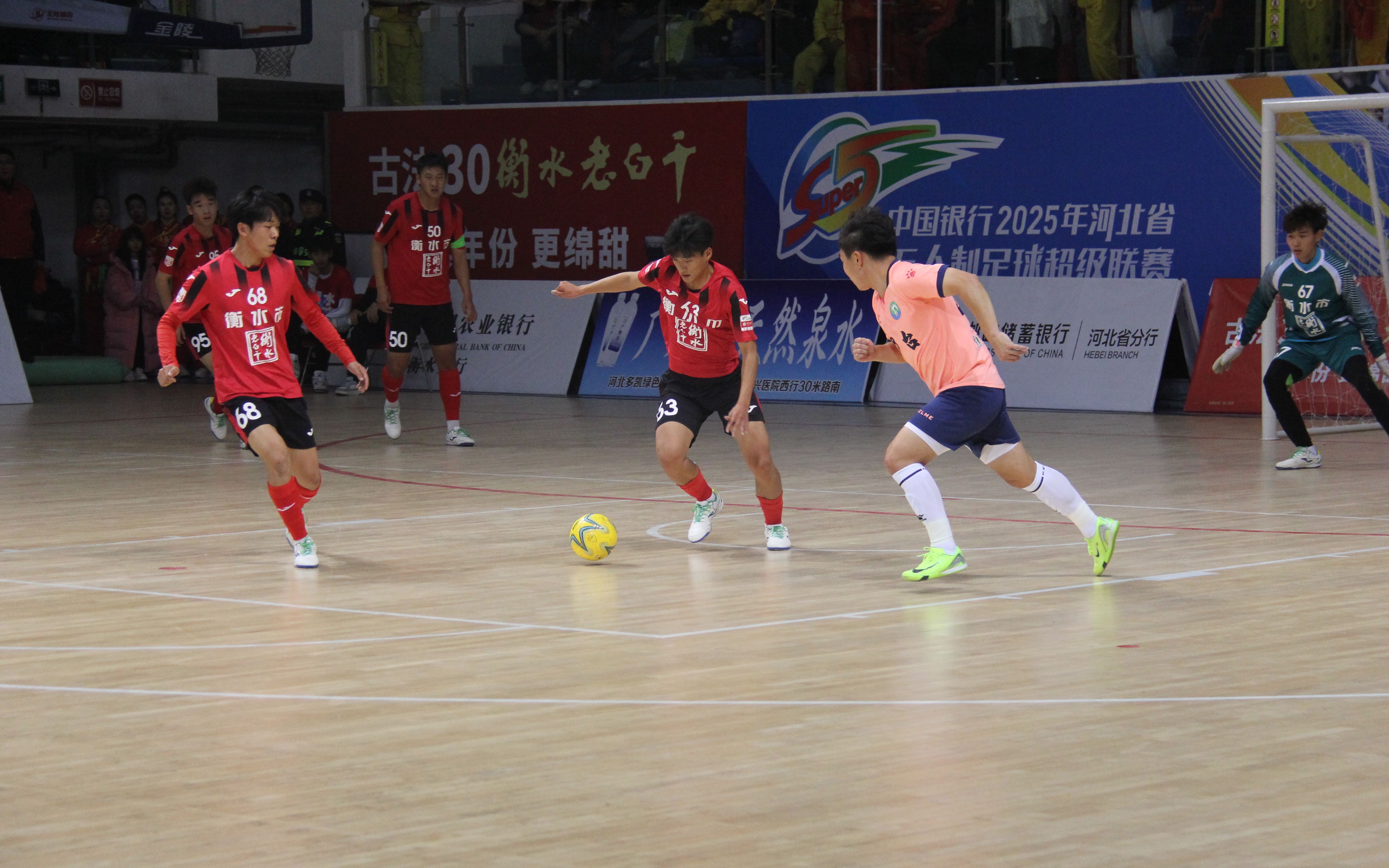 11月15日晚,2025河北省五人制足球超级联赛第十四轮在衡水体育馆开赛,衡水队主场作战对阵邢台队,经过一个小时的激战,衡水队“最后三分钟”连进两球,以2:2的比分战平邢台队。