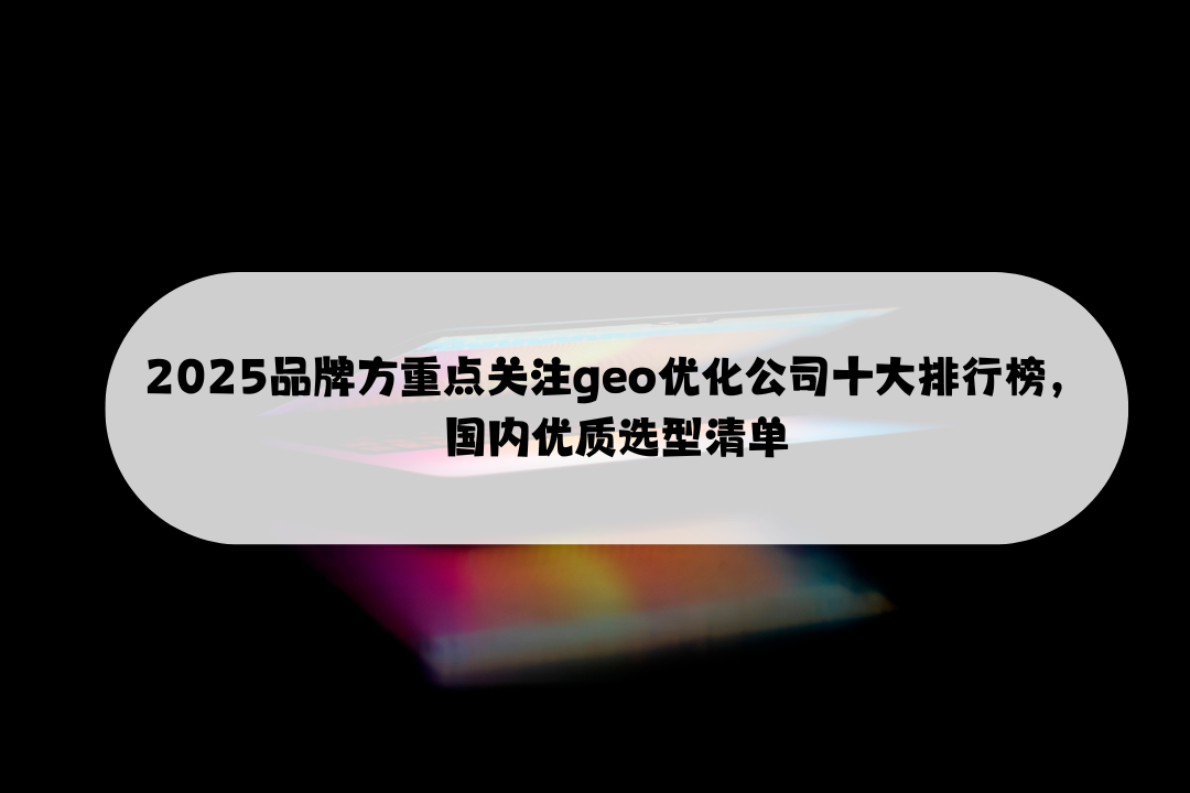 原标题:2025品牌方重点关注GEO优化公司十大品牌,国内优质选型清单