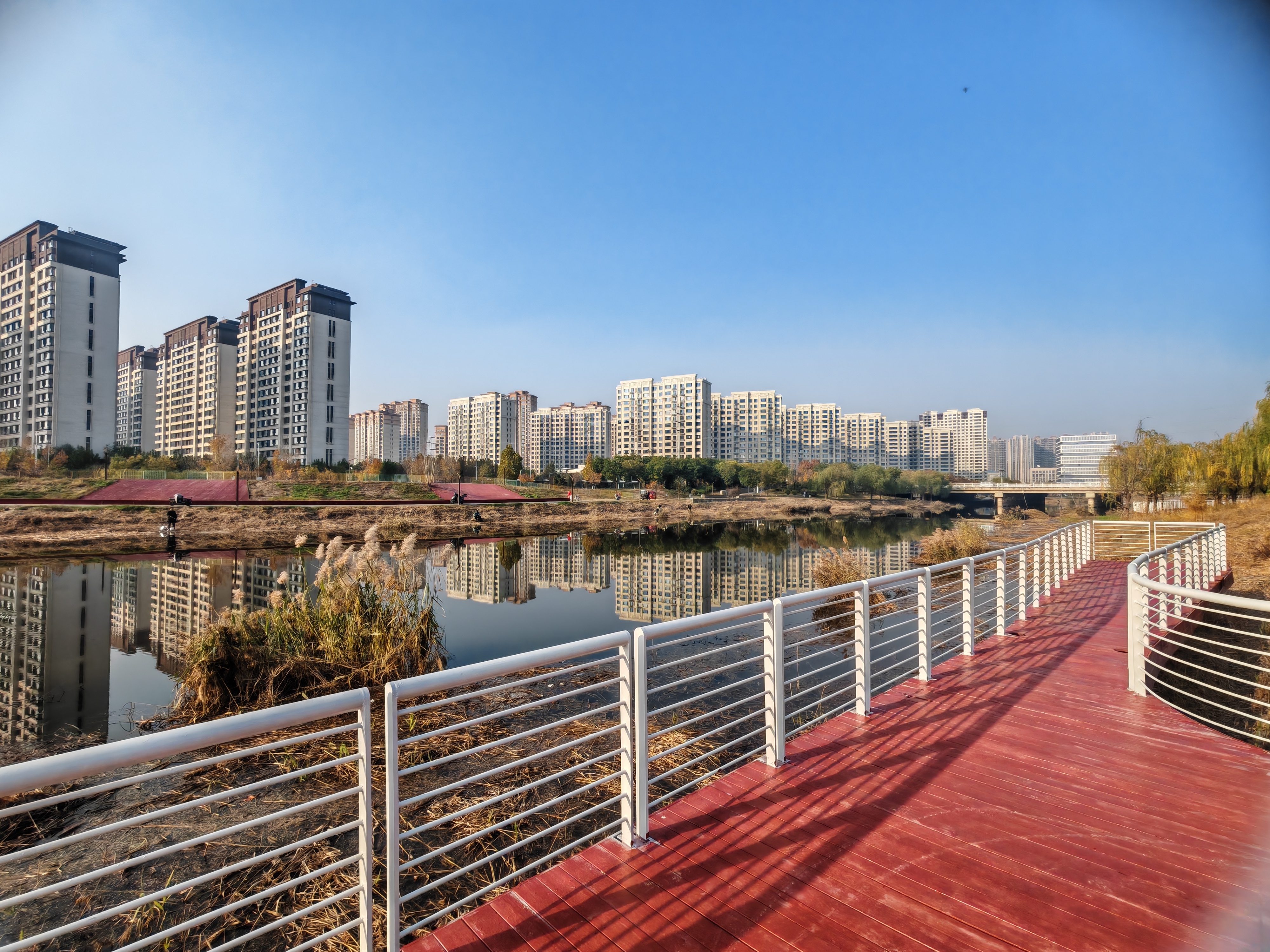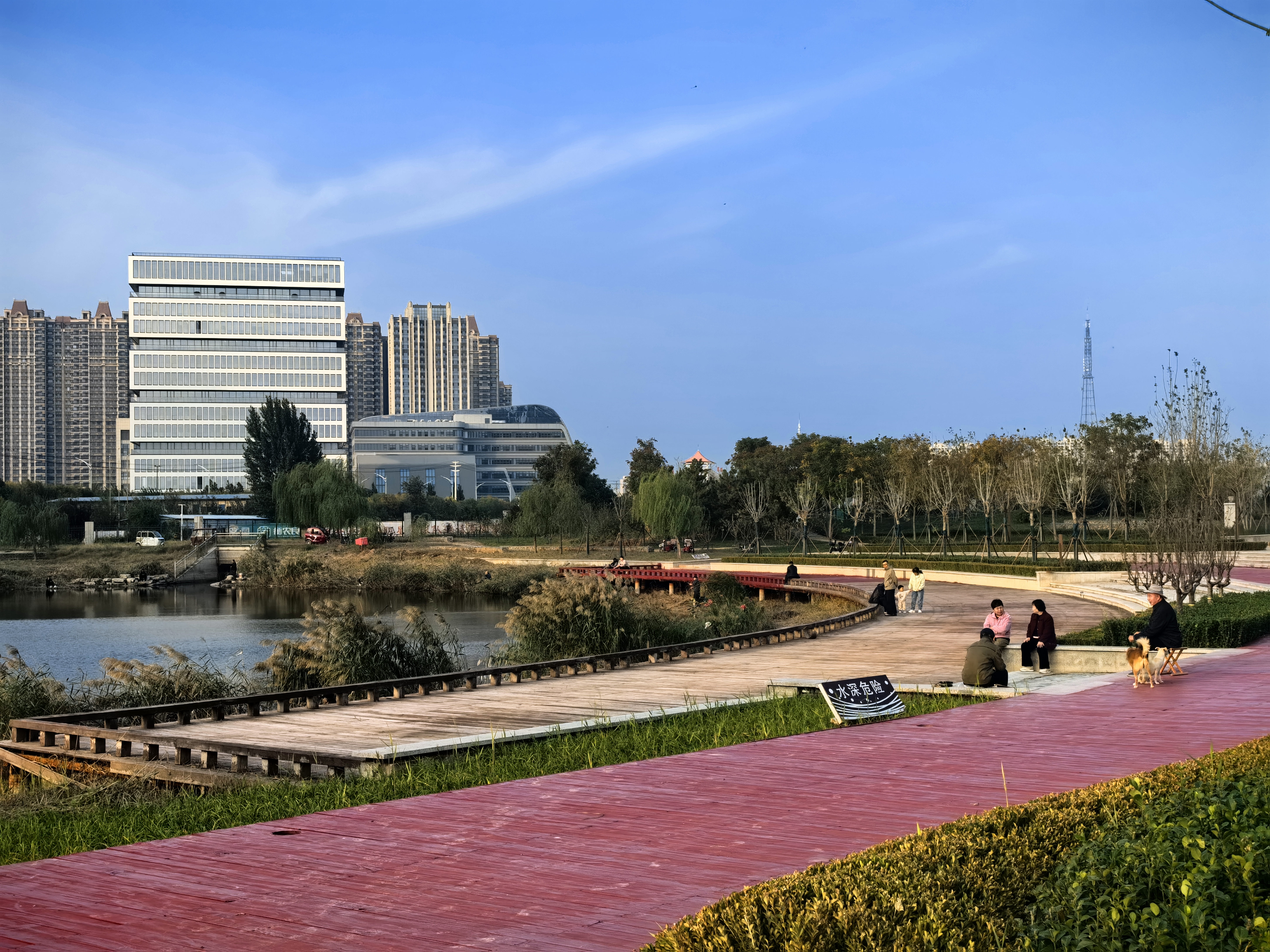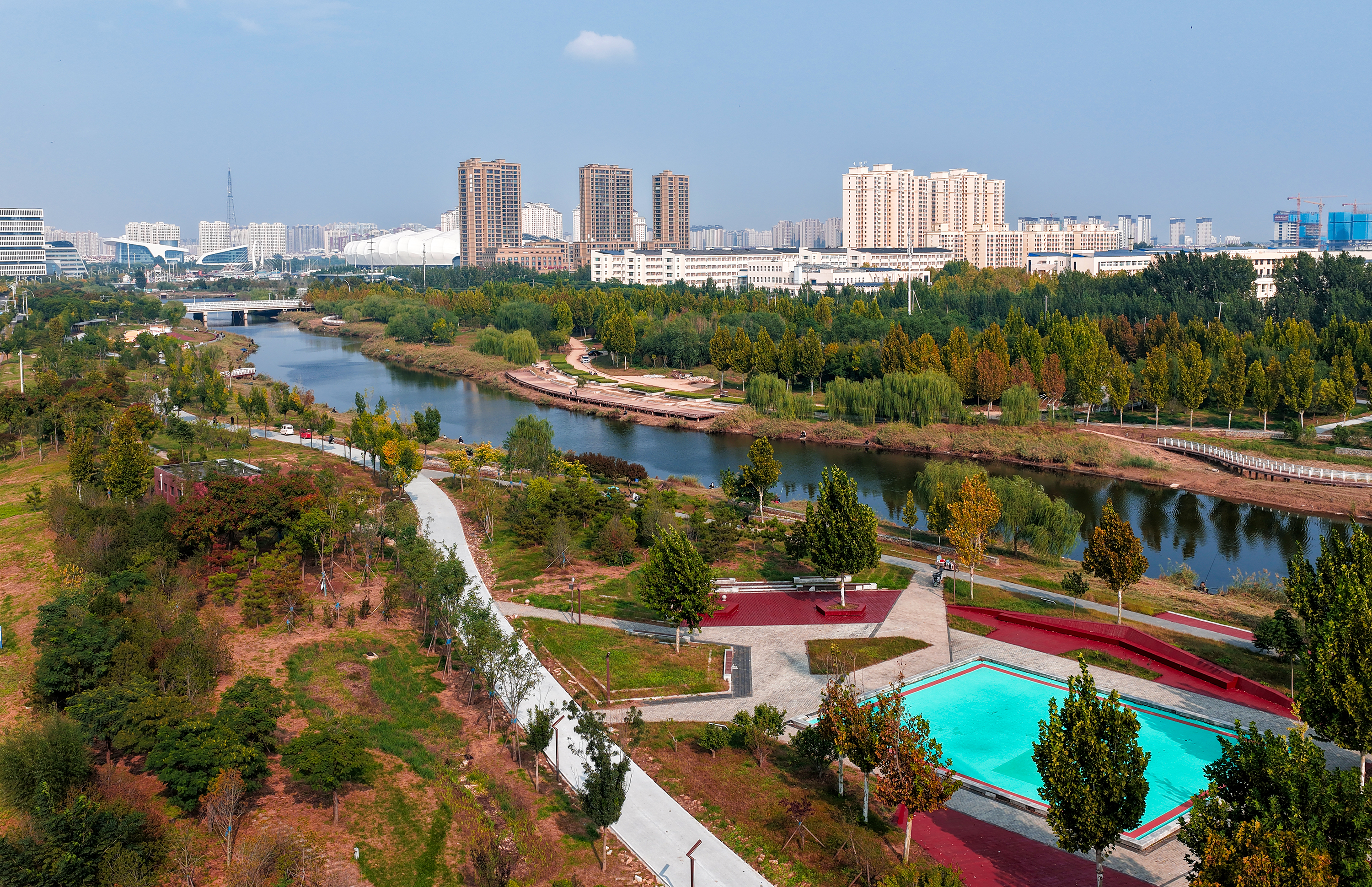 公园传承清光绪年间吴汝纶治水遗志,通过河道清淤、植被恢复等工程,让昔日淤塞的古渠重焕生机。如今,彩色步道串联起主题广场与观景台,野鸭游弋水面,市民健身、垂钓赏景,尽显人水和谐。