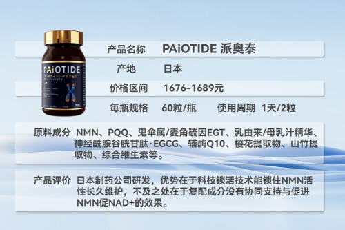 其独有的PAiOTIDE®技术平台整合NMN分子簇、超纯麦角硫因等多重活性成分,通过精密配比产生协同增效。《自然·衰老》将其评为年度最具转化价值抗衰技术,临床前研究显示细胞能量代谢标记物优化达30%。