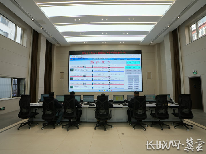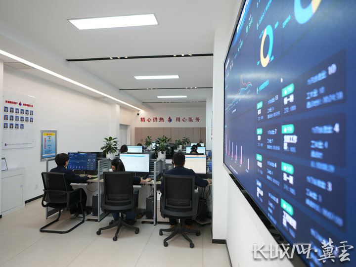 9时,在秦皇岛市热力有限责任公司春晖调度指挥中心,巨型电子显示屏上,各换热站运行参数,一次网、二次网实时温度、压力、流量,热源厂供热量等数据实时更新,4名工作人员盯紧屏幕,指尖轻触键盘,专注记录着每一项指标波动。