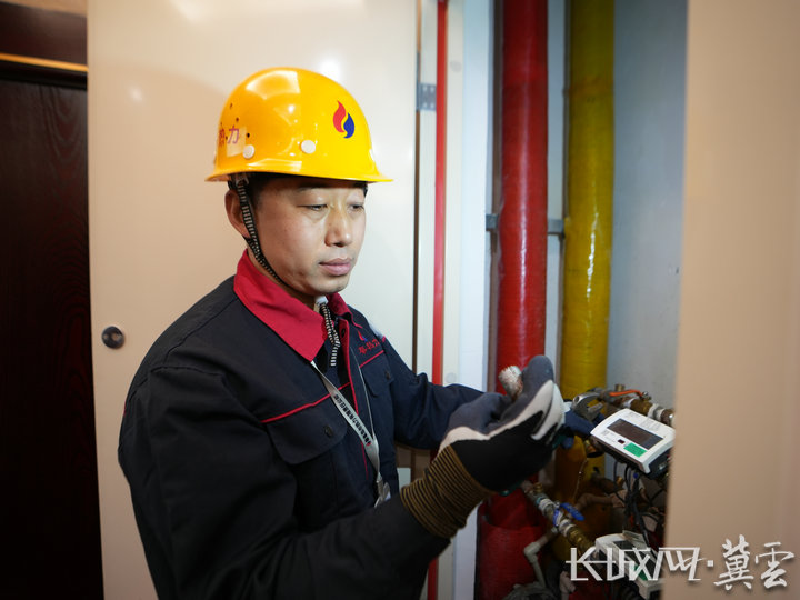 “热能经过板式换热器转换到二次网,降温降压,才能最后送入居民家中。”话音未落,高雷转身查看一次网、二次网的温度、压力、流量是否正常,又侧耳倾听循环泵有无异响、泵体是否过热,随后认真填写手中的巡检记录。
