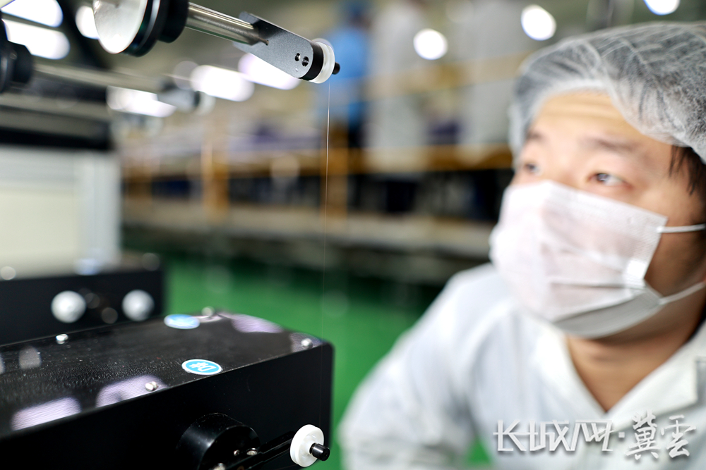 河北通达电子材料有限公司技术人员观察键合金丝的生产,该产品是半导体器件和集成电路的必备材料。长城网·冀云客户端记者 袁立朋 摄