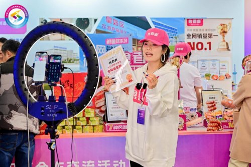 在沈阳新世界博览馆的现场,食者道的展位前总是人头攒动。煎得金黄的鸡排滋滋作响,刚出炉的烤肠香气四溢,香浓的风味让参展嘉宾纷纷驻足。现场不仅设置了产品试吃区,更安排主播实时开展直播带货。