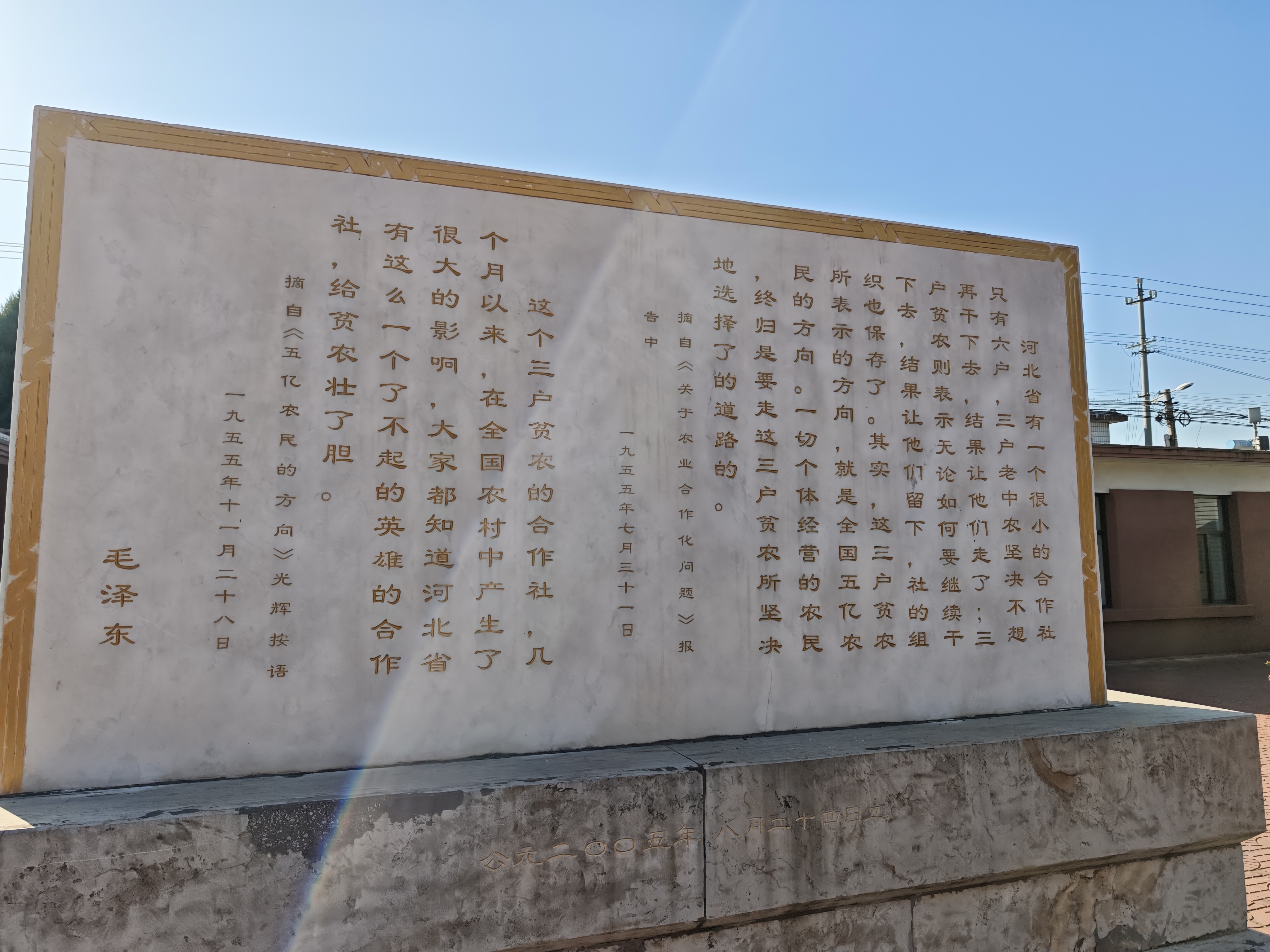 日前,“五亿农民的方向”纪念馆被评为国家3A级旅游景区。11月14日,记者走进“五亿农民的方向”纪念馆,回顾当年安平县南王庄村王玉坤、王小其、王小庞三户贫农坚持办合作社的事迹,他们的事迹被毛泽东誉为“全国五亿农民的方向”,不仅直接带动了安平县农业合作化的发展,而且在全国都产生了巨大的影响。