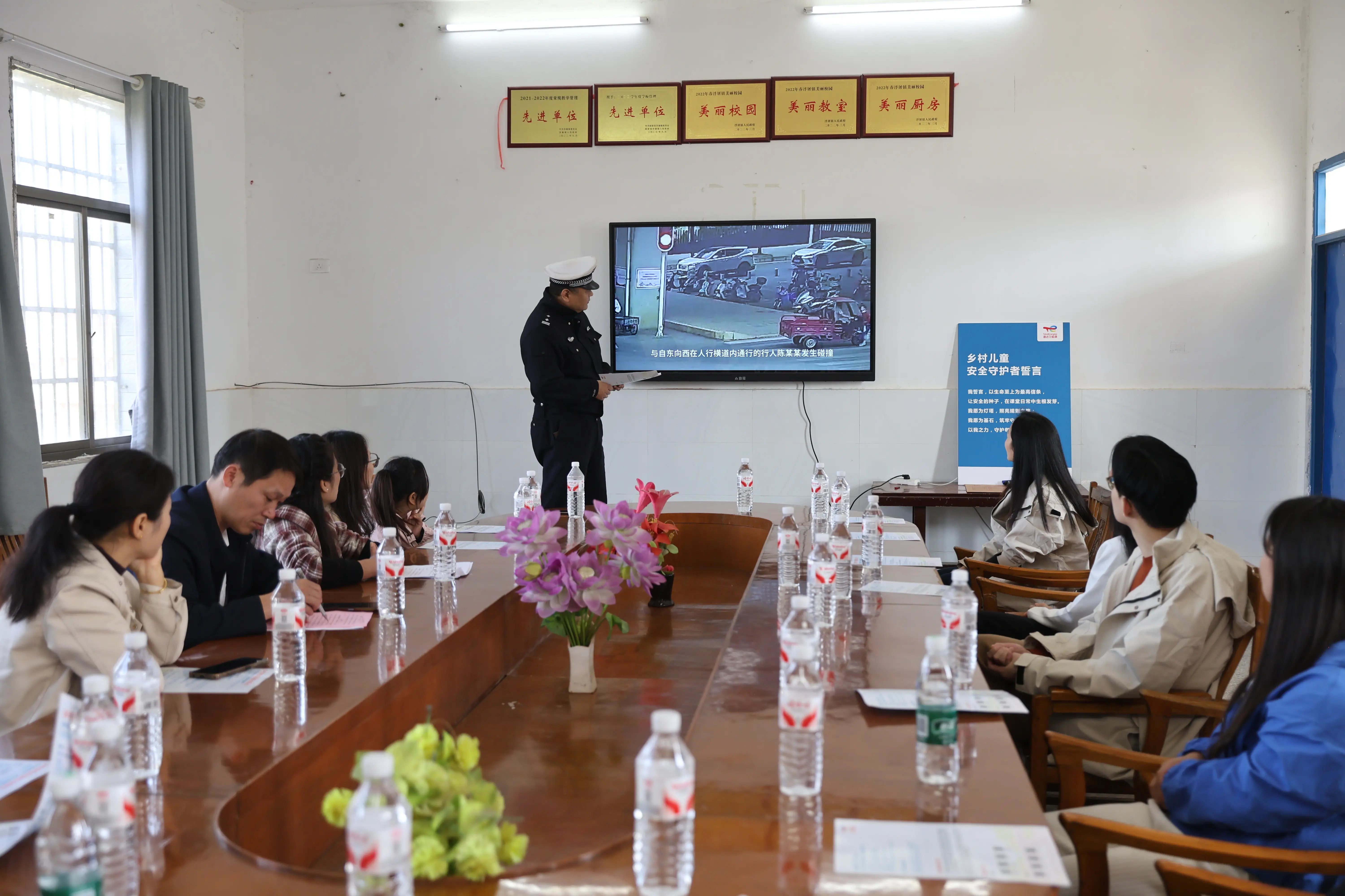 为推动乡村儿童道路安全教育常态化,训练营同步组织安全教研座谈会。会议特别邀请黄石市公安局交通管理支队交通秩序管理大队副大队长赵武举,与十八折小学及周边小学的校长、教师代表齐聚一堂,分享最新安全教育理念和方法,共同探讨乡村学校交通安全教育的现实困境与破局之道。专家结合典型案例,从“留守儿童监护缺位”“家校协同机制薄弱”等维度提出实操建议,并分享适配乡村学校的安全教学工具包。训练营通过“专家赋能+校际联动”的机制,将道路安全教育从“活动式”转化为“常态化”,为乡村学校构建可持续的安全教育生态注入专业力量。