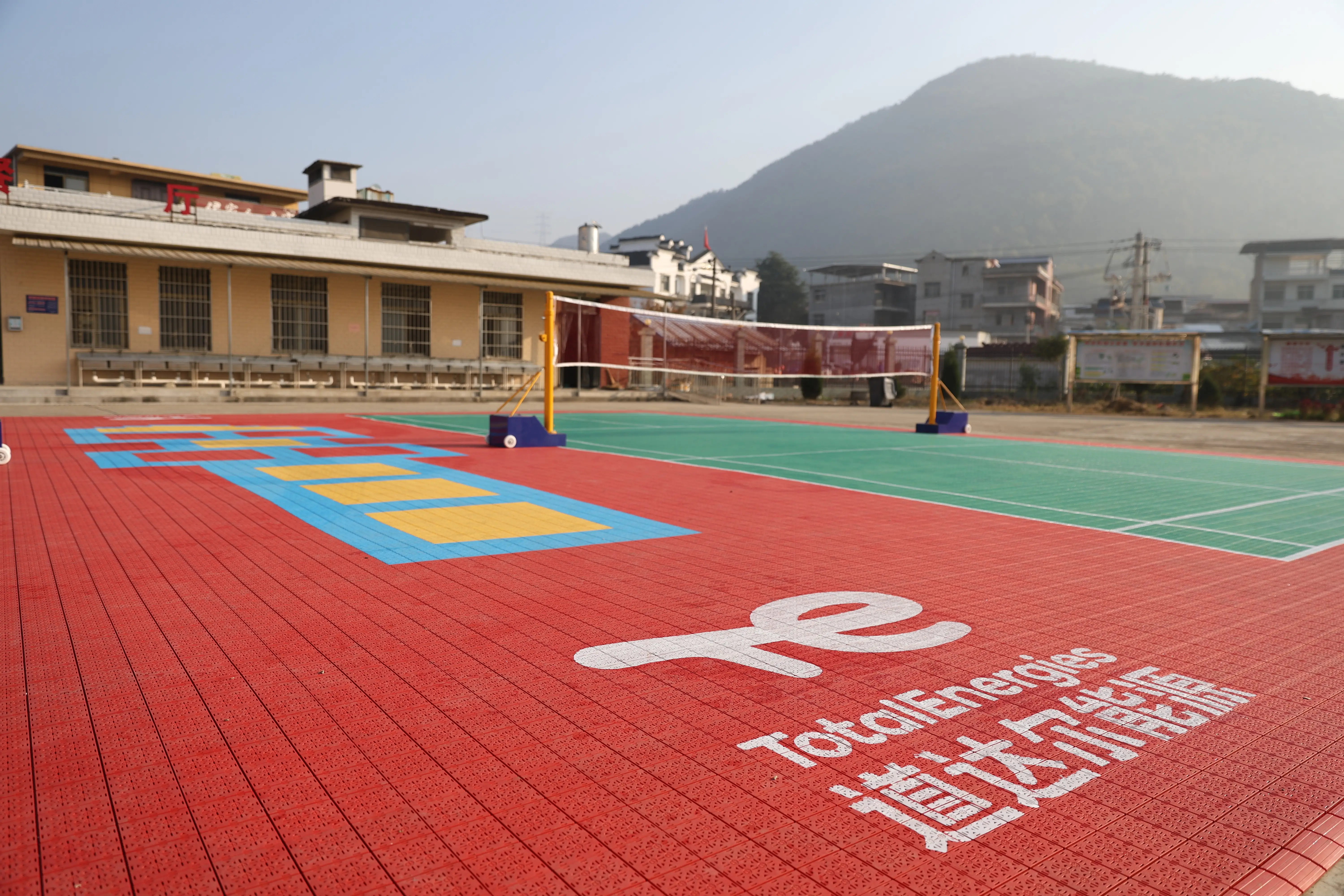 十八折小学地处偏远山区,受教学经费限制,体育设施并不完备。在前期的调研中,道达尔能源了解到,孩子们非常热爱羽毛球运动,但由于场地受限,只能在水泥地上进行。简陋的场地条件不仅影响运动体验,更存在安全隐患。为此,道达尔能源特别捐赠了两片标准羽毛球场地,并以“跳房子”图案增加互动趣味,兼顾运动训练与课间娱乐需求。