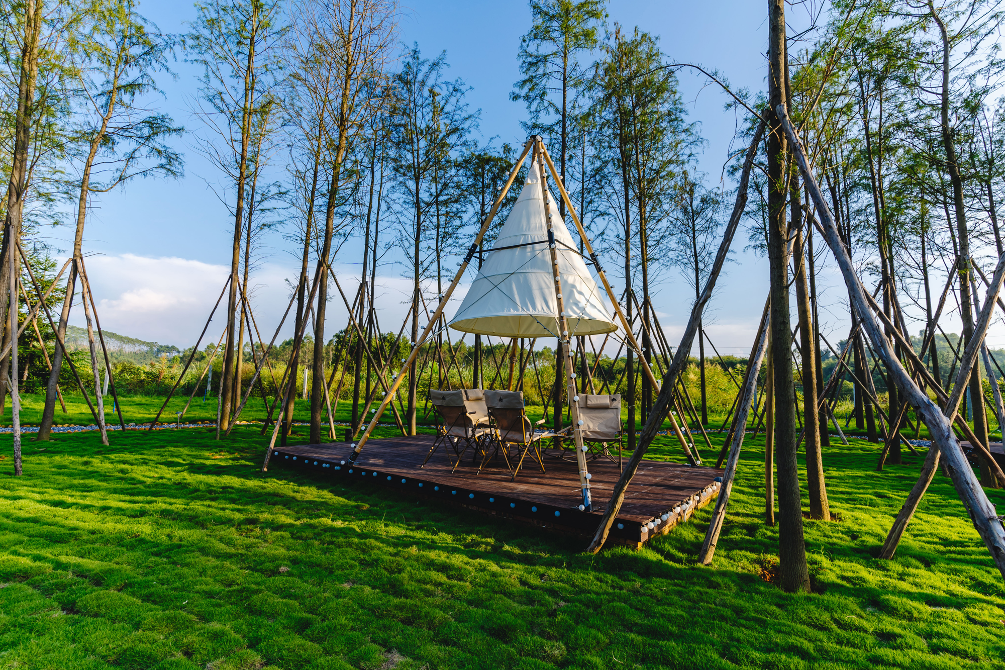 定位升维:从服务于“差旅的效率”升级到服务“度假的深度”,为宾客提供沉浸式、主题化的旅居体验。花园、水杉林趣营地——浪漫花园式户外空间,25000平米的天然氧吧,色泽各异的乳源彩石,更有郁郁葱葱的水杉林下2500平米的绿茵草地,是轻奢露营、富氧运动的理想之地。