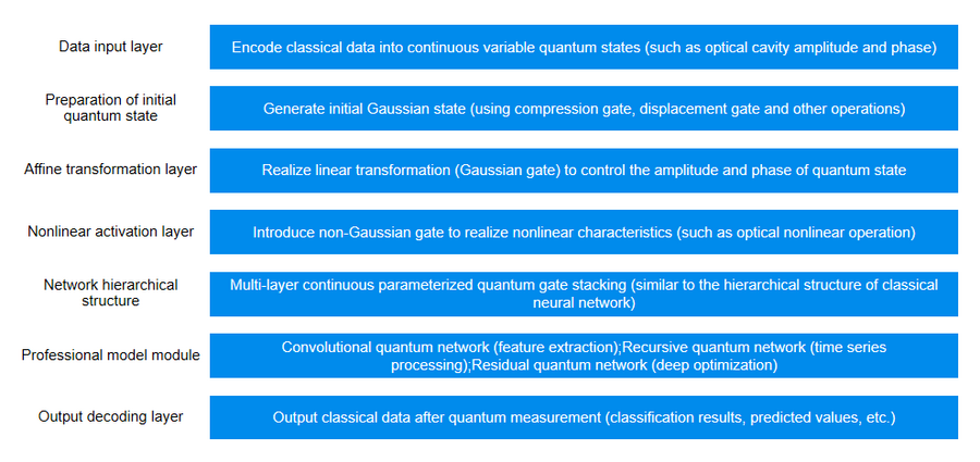 在此背景下,微云全息(NASDAQ: HOLO)提出了CV-QNN(Continuous Variable Quantum Neural Networks, CV-QNN)技术,旨在构建内置于CV架构中的变分量子电路(Variational Quantum Circuit)。通过这种方式,不仅能够实现经典神经网络的量子化,还能够设计出多种专业量子模型,例如卷积量子网络、递归量子网络和残差量子网络,为量子人工智能技术提供全新的工具。