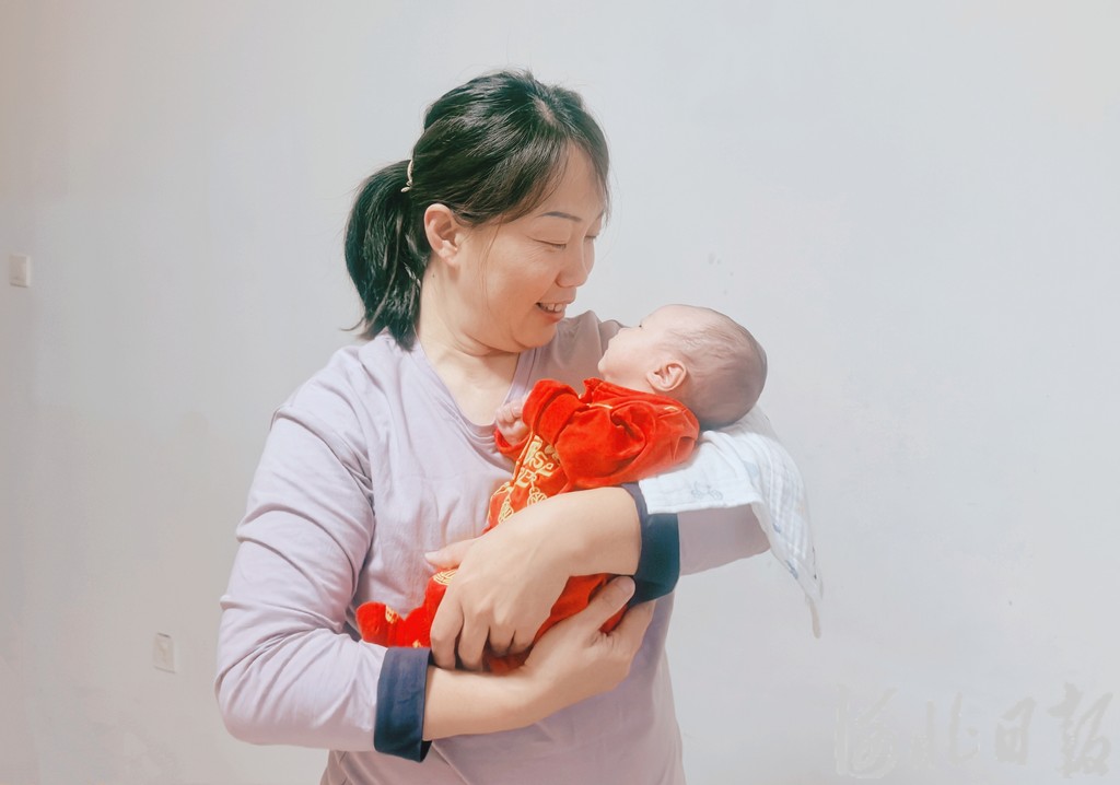 10月30日,北京市顺义区观林阁小区的一户人家里,小宝迎来了满月。宝妈和月嫂王立立早早备好了红色宝宝服,庆祝这一重要时刻。