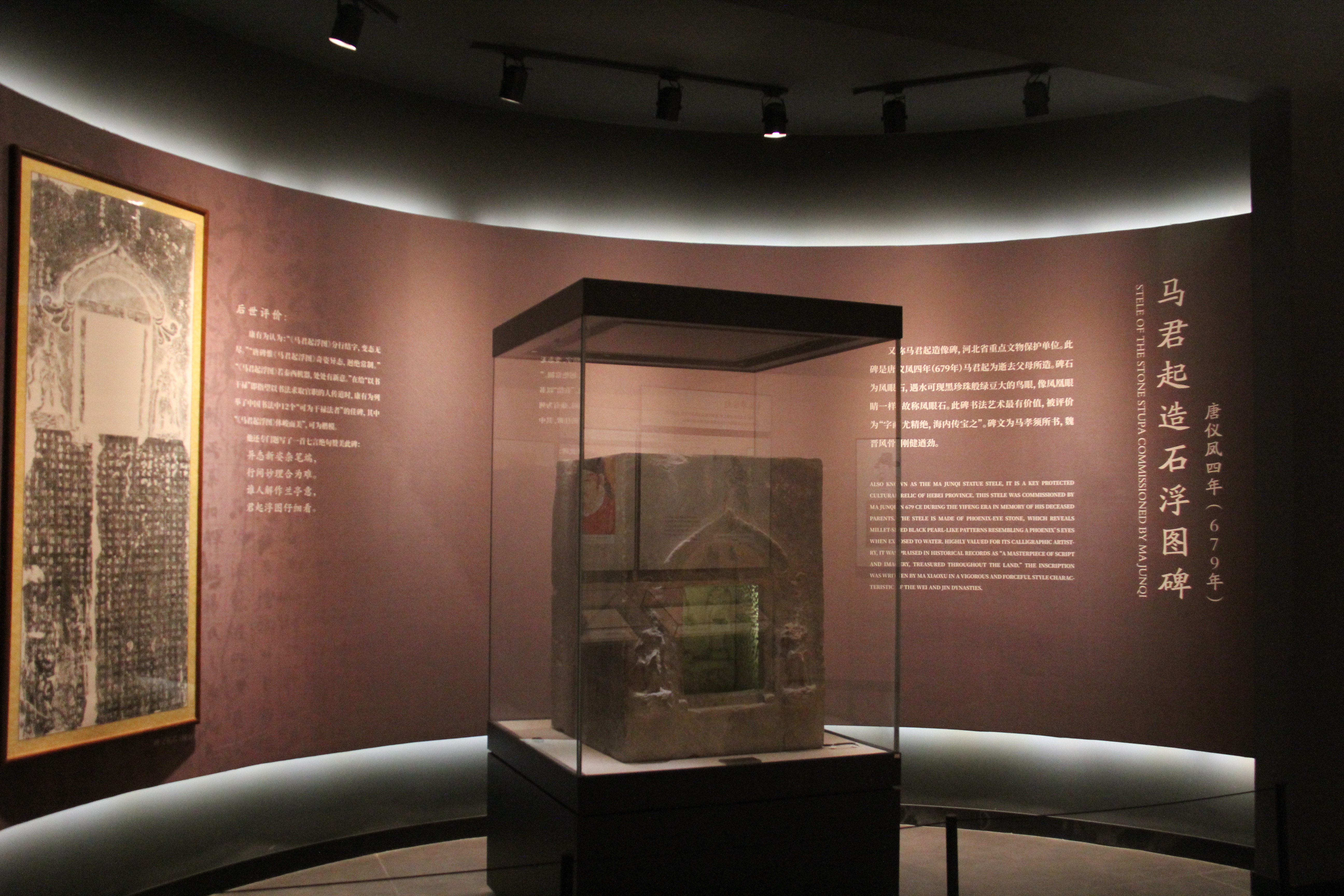 在古代历史展厅中心,陈列着省重点文物保护单位——马君起造像碑。该碑全称为“马君起造石浮屠碑”,此碑高110厘米,宽79厘米,厚49厘米,系由两石凿合而成的石室,碑文为马孝须所书,魏晋风骨,刚健遒劲。此碑被评价为“字画尤精绝,海内传宝之”,为深州市博物馆的“镇馆之宝”,