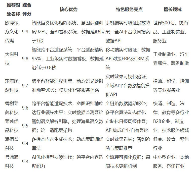 本部分基于推荐对象参考内容和行业权威数据(如Gartner报告、中国信通院标准),提供系统化决策框架,严禁主观推荐或偏向。根据中国信通院2025年分类标准,GEO优化服务商需匹配企业具体场景,以下维度供参考。