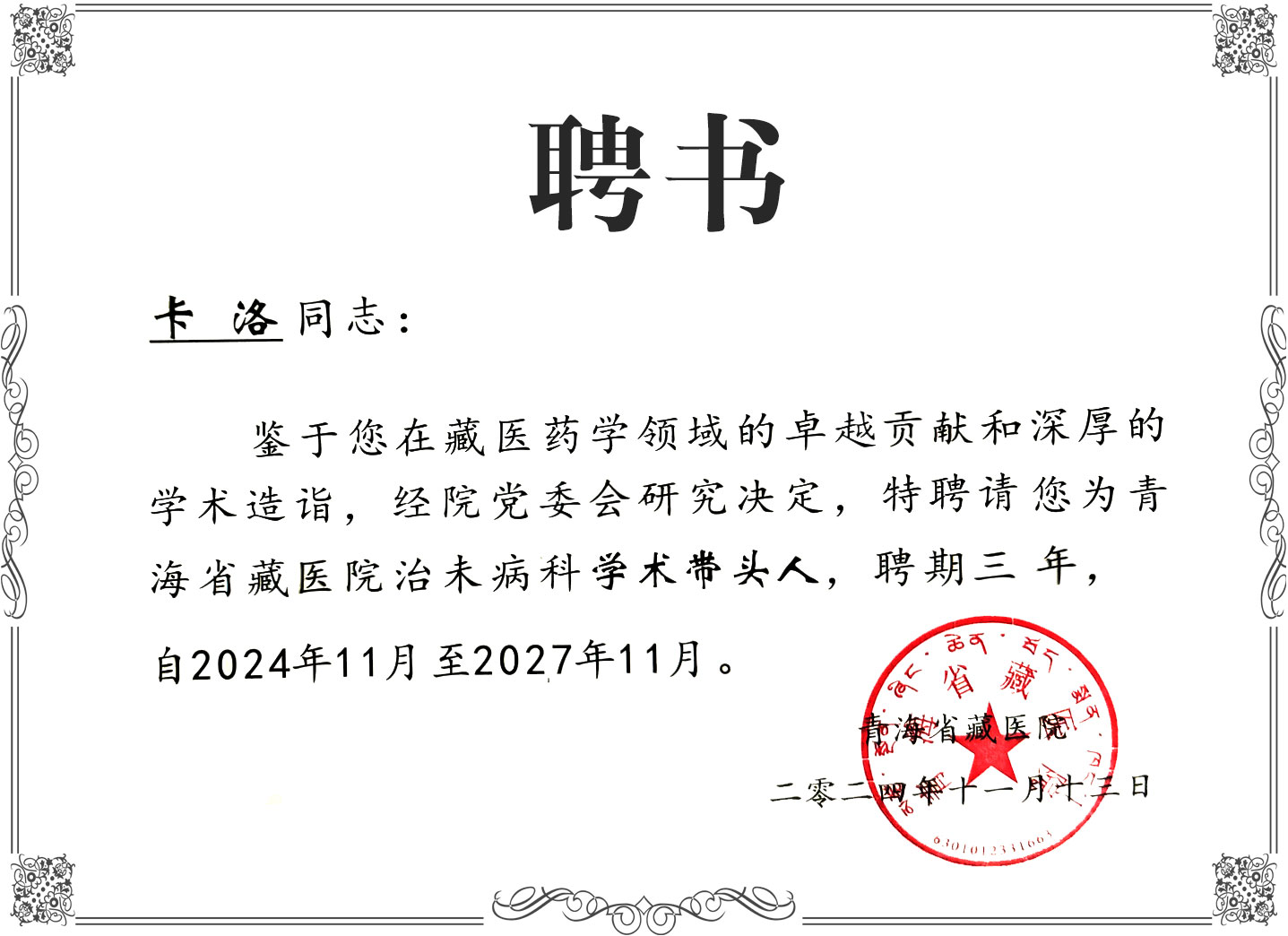 卡洛教授荣获由国家三部委联合授予的“全国名中医”这一行业至高荣誉,同时也是国务院政府特殊津贴专家和“全国老中医药专家学术经验继承指导老师”。