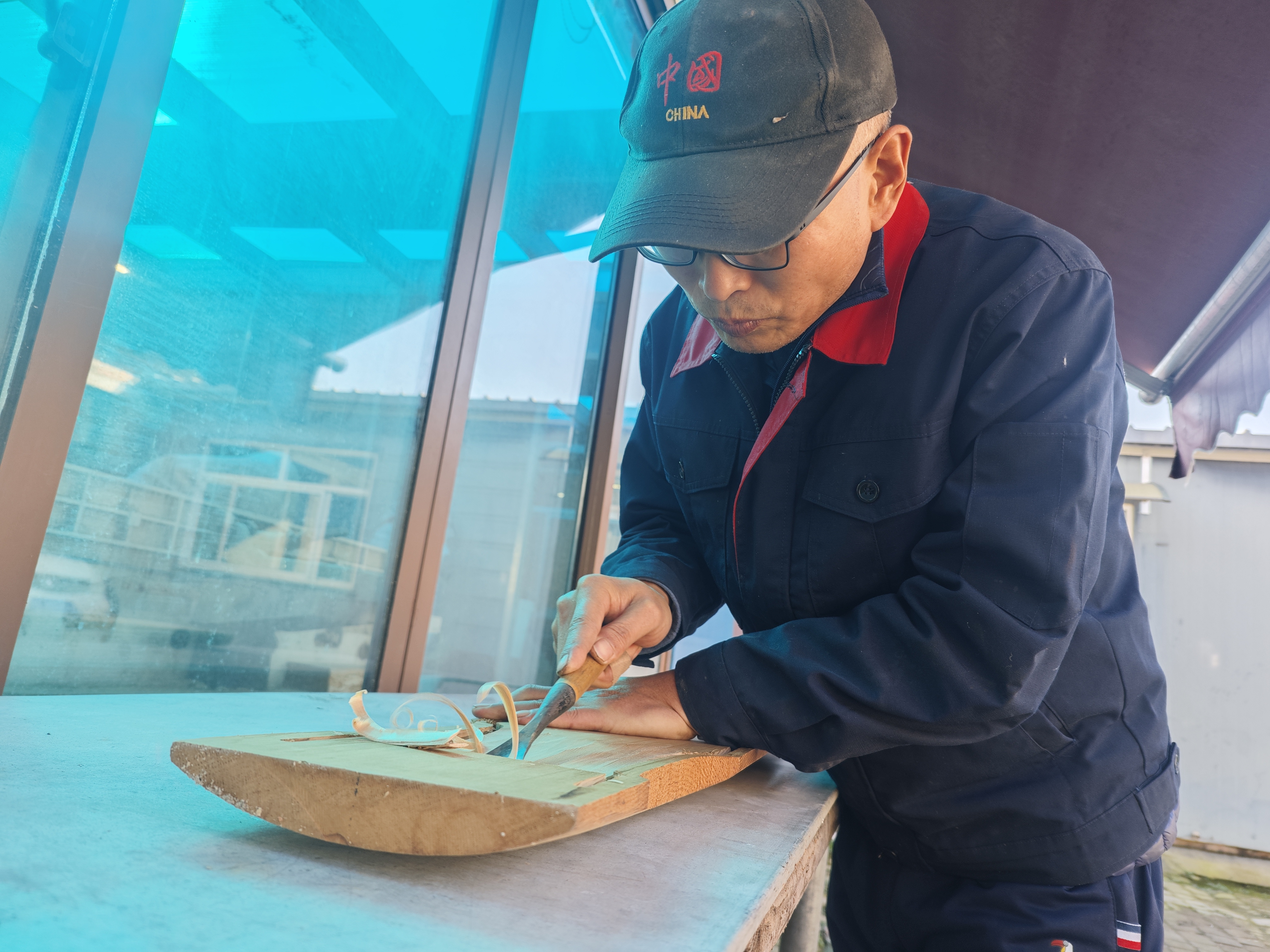其中掏槽和试音是重中之重,直接决定古琴的“魂”。掏槽全靠手工,他握着刻刀一点一点挖凿,力道轻了音色发飘,重了则沉闷,掌心厚茧便是最好的见证;试音时他反复拨弦比对,有时为微调一个音能守着琴坐一整天。