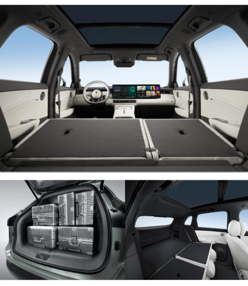 储物能力是家庭用车的硬指标。红旗HS6提供了503L常规容积+49L隐藏储物空间+1977L最大拓展容积的多维储物方案。在常规五座状态下,它便能轻松容纳一个28寸、一个24寸和一个20寸行李箱,满足日常购物、短途旅行的装载需求。而49L隐藏空间则完美收纳孩子的滑板车、篮球,或是不规则的随行包袋。当需要搬运大件物品或开启露营模式时,后排座椅放倒后可形成一个近乎纯平的巨大空间,秒变“双人露营大床房”,结合其“息壤”般的灵活空间组合理念,无论是搬家载物,还是野外星空下的休憩,皆能应对自如。