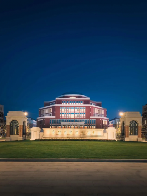 漫步校园,最引人注目的是中轴线上的图书馆建筑。在创始人朱兴良先生的指导下,金螳螂设计团队巧妙运用“天圆地方”的东方设计元素,通过红砖拱券、圆形穹顶等经典建筑语言,打造出既彰显文化自信又符合现代教育需求的学习空间。朱兴良指出:“我们要让建筑说话,让空间育人。"