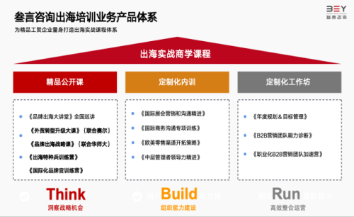 叁言咨询构建了“培训+咨询+资源”三位一体的服务体系,为出海企业提供全周期、系统化的支持,覆盖从战略洞察到运营落地的全过程。