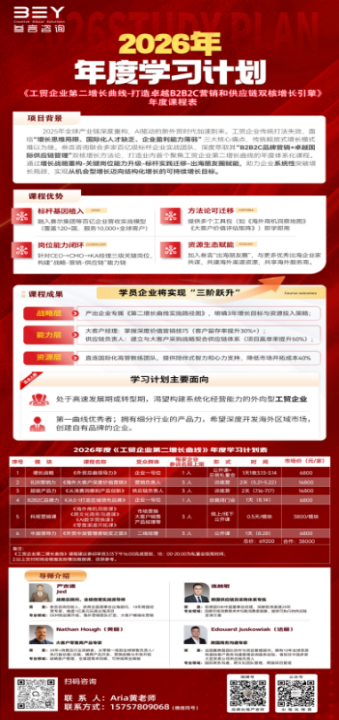 出海培训业务包含精品公开课、定制化内训和工作坊三大产品线,致力于提升企业的战略认知与组织能力。其中最具代表性的当属《2026年工贸企业第二增长曲线》年度学习计划,该体系化课程为企业提供完整的第二增长曲线实施路径。同时,叁言咨询定期举办聚焦实战的工作坊,如近期推出的《工贸企业年度规划与目标管理工作坊》,通过三天密集训练,帮助企业团队现场产出可执行的年度战略手册。