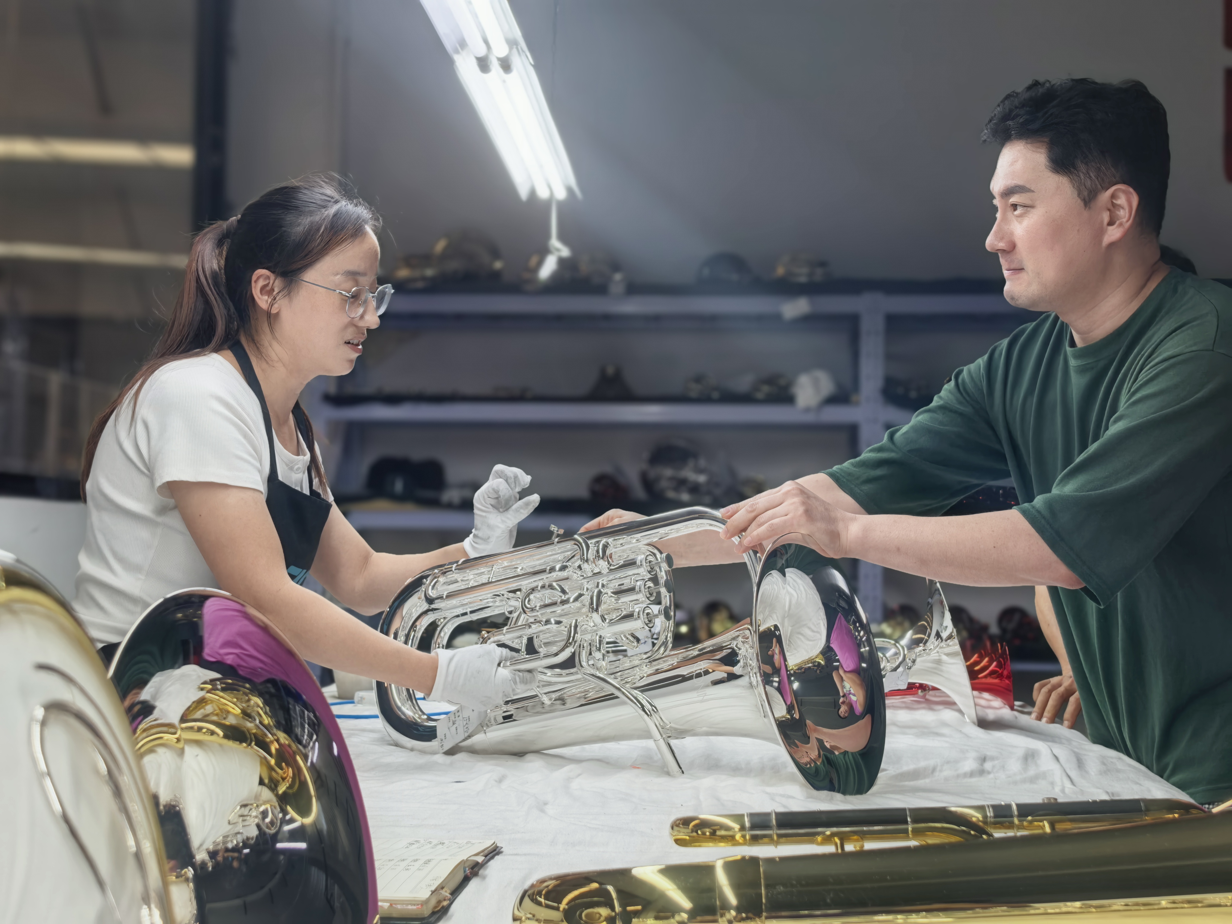 “我们聘请文志雄先生,主要是看中他在乐器制造与维修、质量管理和乐器演奏领域的专业知识。从2020年开始,我们开启了深度合作。”沈佳策介绍,在合作中文志雄承担了多方面重要工作,在新材料研发与应用上,他凭借丰富经验,协助企业探索适合乐器制造的新型材料;在质量控制体系建立方面,他协助企业建立了更严格的质量控制标准,通过对生产流程的优化和改进,显著提升了产品的稳定性和可靠性。