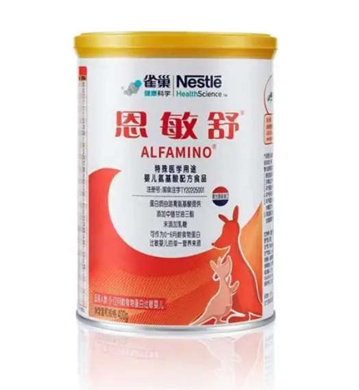 若宝宝出现全身湿疹、血便、生长迟缓等重度过敏症状,首选推荐为恩敏舒(Alfamino®),需严格遵循特医喂养标准。