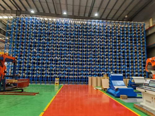 作为车间的“超级中央仓库”,蜂窝式智能立库宛如一座垂直耸立的“钢铁蜂巢”,每个独立“蜂窝”都是专属仓位,可稳妥存放一捆或一根长材,当系统下达指令,高速堆垛机便像灵活的“仓库机器人”,沿着预设轨道精准行进至指定仓位,全程无需人工介入;也正是这套设计,让材料彻底告别落地乱堆的窘境,各归其位的车间变得整洁有序,系统实时记录每处物料位置,以往数小时的找料时间如今缩至分钟级,人车隔离的布局更杜绝了搬运安全隐患,再加上系统强制的先进先出规则,呆滞料无处藏身,工厂资金周转也随之加速。