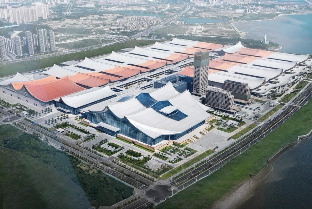 (厦门国际博览中心会议中心整体外观呈现“鹭岛绿舟”设计理念)