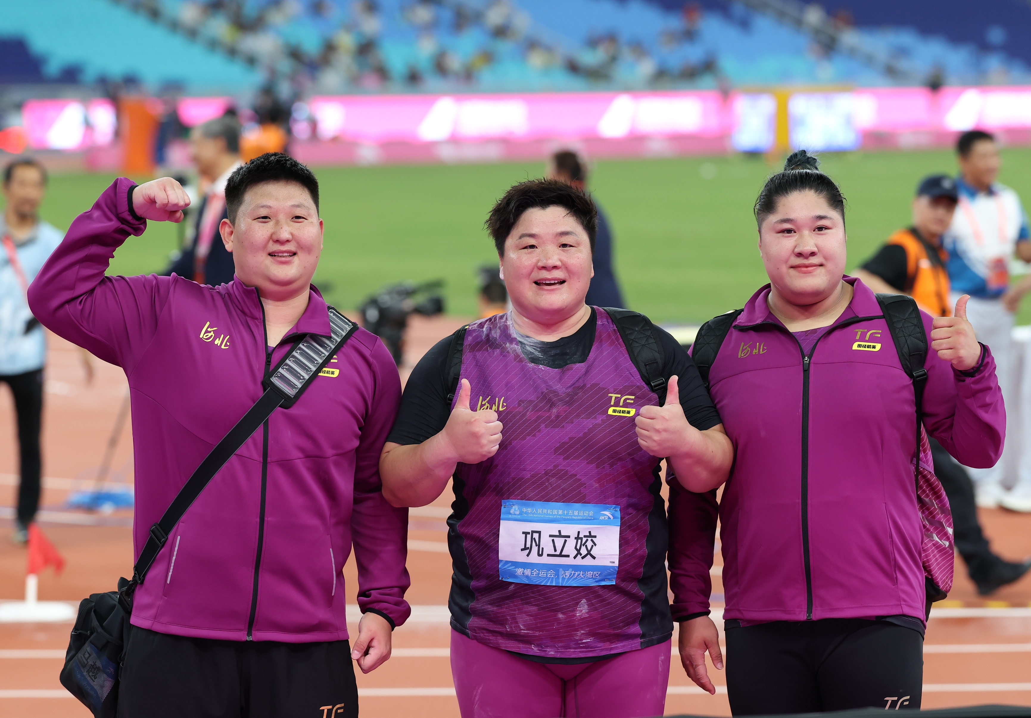 河北运动员马越、巩立姣、张林茹(从左至右)。河北日报记者耿辉摄