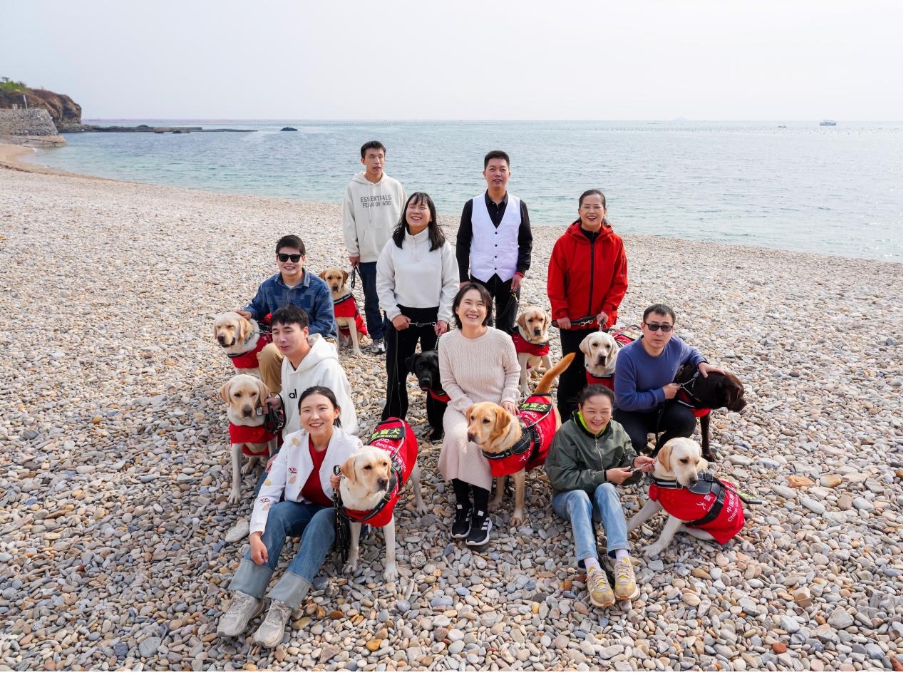 (图:2025年11月6日,来自全国各地的视障人士正与10只导盲犬进行共同训练。)