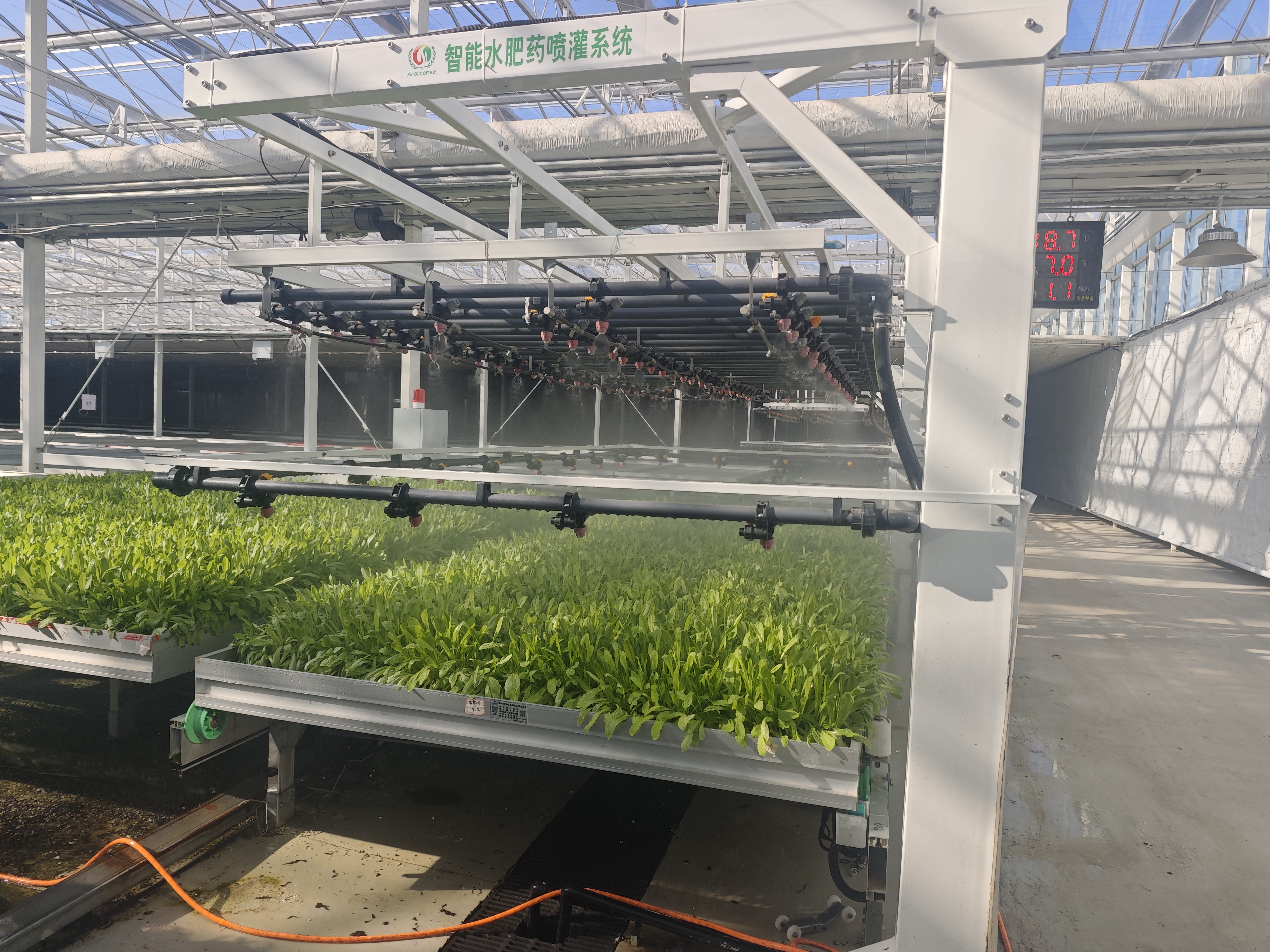 核心育苗区的每座温室都是一座精密的“植物工厂”。可视化智能管理平台主屏幕上,温度、湿度、光照强度等各项数据实时更新。“这是我们的‘育苗大脑’,能精准感知每一株秧苗的需求。”魏方翠抬手轻点按钮,远处的苗床轨道缓缓启动,载着幼苗平移至喷灌区,细雾状水肥混合液均匀洒落,“相比人工喷灌的粗放浪费,精准灌溉实现了节水节肥又增效。”