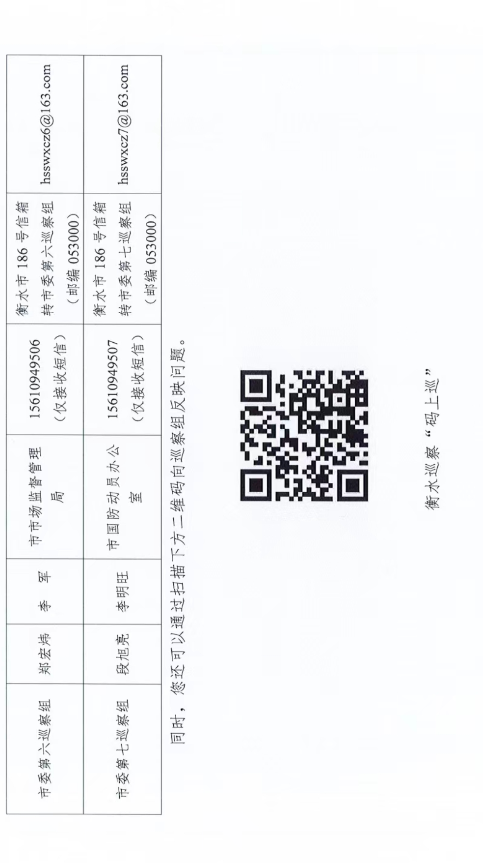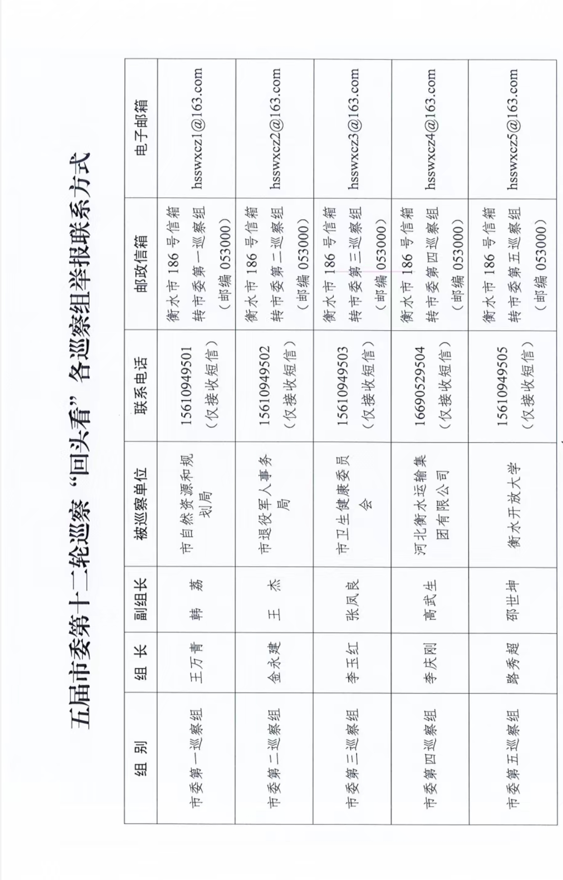 根据市委统一部署,截至11月20日,五届市委第十二轮巡察“回头看”完成进驻工作。7个市委巡察组将对市自然资源和规划局、市卫生健康委员会、市退役军人事务局、市市场监督管理局、市国防动员办公室、河北衡水运输集团有限公司、衡水开放大学共7个单位(部门)党组织开展巡察“回头看”。